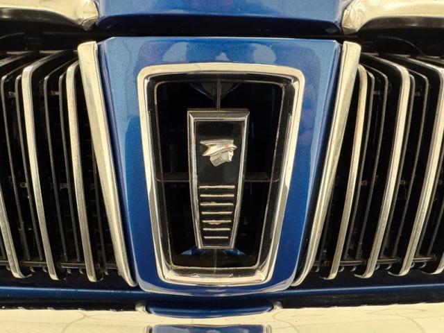 A stunner and a runner in two stage Medium Blue Metallic paint, enhanced with a white pinstripe on the beltline, wheel opening trim, polished window trim, and accenting hash marks on the rocker panel. That accent picks up on front and rear fascia that match with headlight covers that are a continuation of the ribbed grille, and a tail light band that only stops to make room for the license plate. Chrome bumpers hug the ends, an XR-7 emblem rides the C-pillar, and a subtle, sculpted head of Mercury, God of Speed, is on the nose. 15-inch Rocket wheels carry staggered size tires affording the car a subtle rake. Overall the paint, metalwork and trim are in nice shape. Imperfections include gap issues on front fender, uneven spots of paint, touched up chips, scratching in the clear, paint runs, and lots of underpaint scuffs and evident filler under paint.