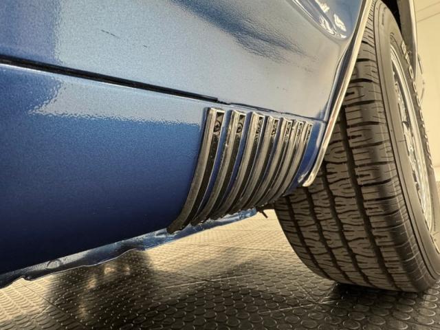 Whistle clean underneath and the blue driveshaft is a nice touch! The source of the symphony is a custom dual exhaust system with FlowMaster mufflers and ending at chrome tips past the bumper. Power disc brakes are up front with power drums in back while suspension consists of coil springs up front and leaf springs in back.