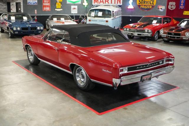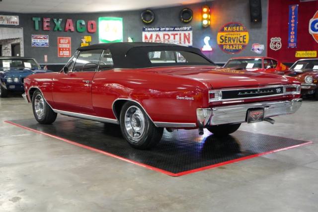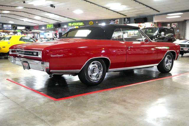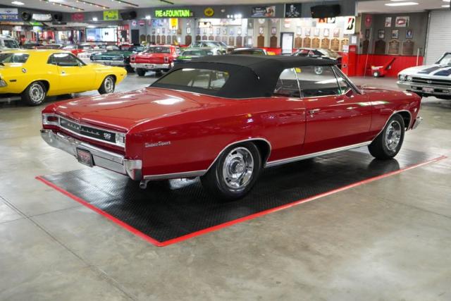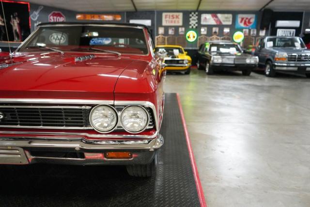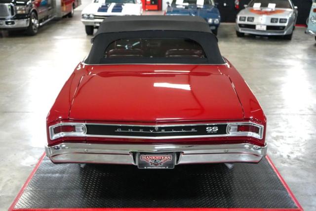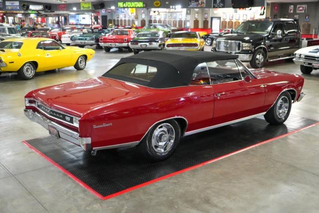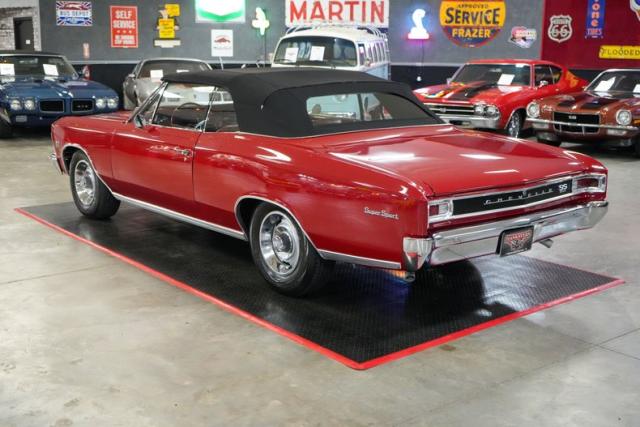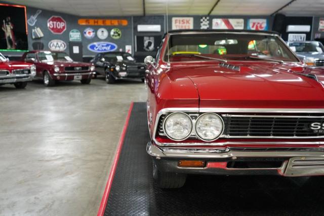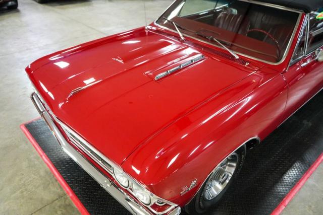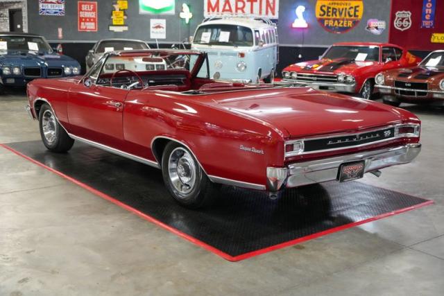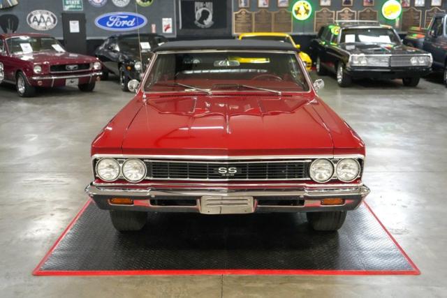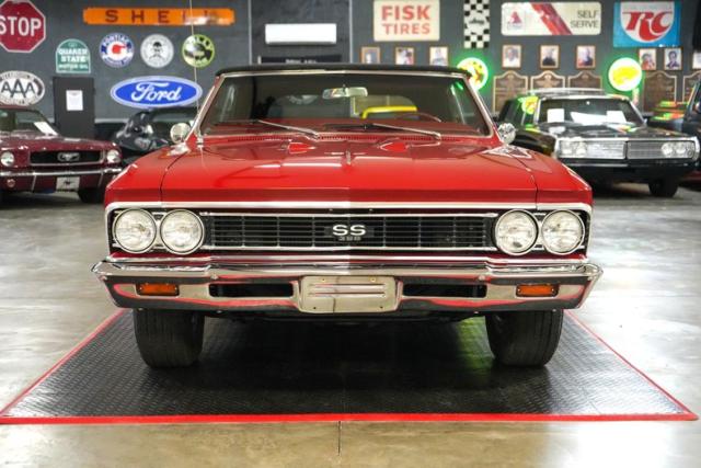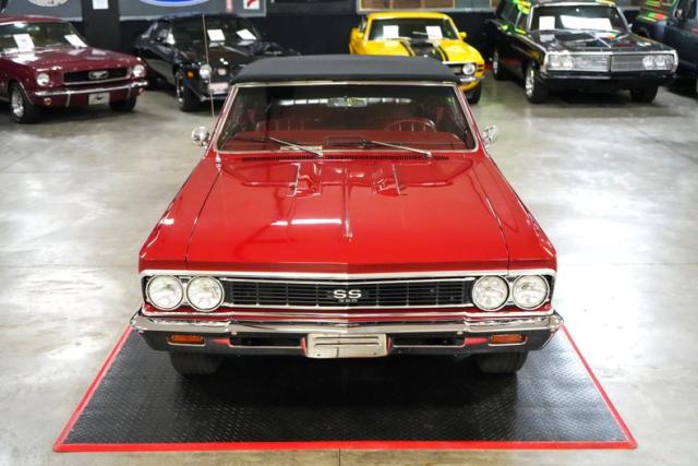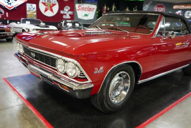 This 1966 Chevrolet Chevelle SS Convertible is a timeless muscle car powered by a 396 Big Block Chevy V8 paired with a Muncie 4-speed manual transmission for an engaging driving experience. A 3.31-geared rear end delivers smooth yet responsive performance. Finished in striking red with a black convertible top, it features a matching red vinyl interior for classic appeal. Equipped with power steering and power brakes, it offers comfortable cruising. Riding on OEM Rally wheels with Uniroyal tires, it retains its factory character with a Rochester 4-barrel carburetor and original-style components, making this Chevelle SS a true open-air muscle car icon. THIS VEHICLE QUALIFIES FOR FREE SHIPPING AND A WARRANTY!!