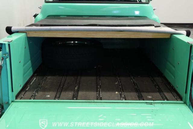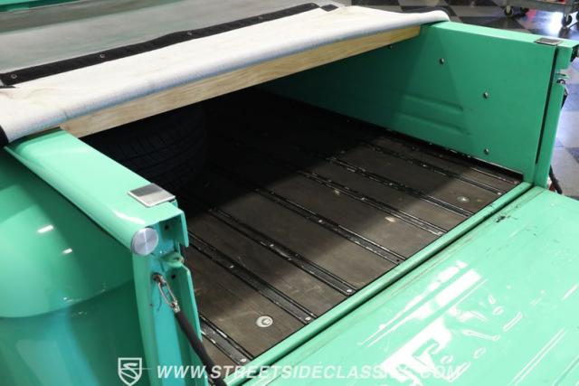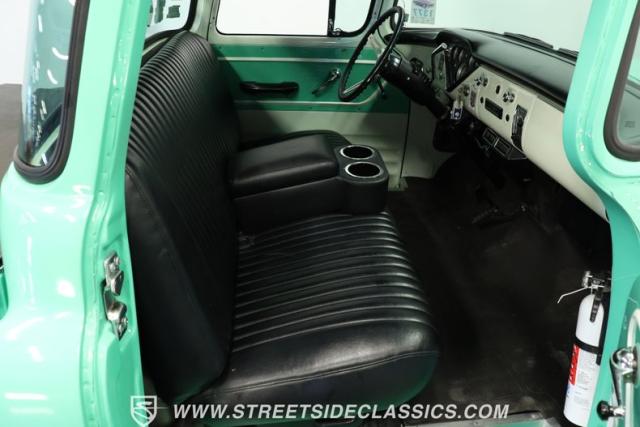 Under the hood, you\'ll find a robust small block 350 V8 engine paired with a smooth-shifting 3-speed automatic transmission. This drivetrain upgrade ensures reliable power and effortless cruising, enhanced by a Rochester QJ 4-barrel carburetor, ram horn manifolds, and a Johnson copper-core radiator for efficient cooling. The setup includes power steering and power brakes with front disc brakes, while the rear suspension features Ridetech adjustable coil-overs for a comfortable yet controlled ride. The electrical system boasts an Optima red top battery and an electric fan, making this truck as dependable as it is iconic.