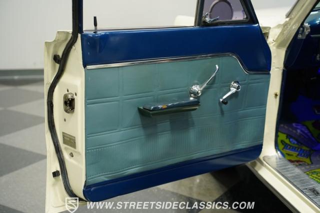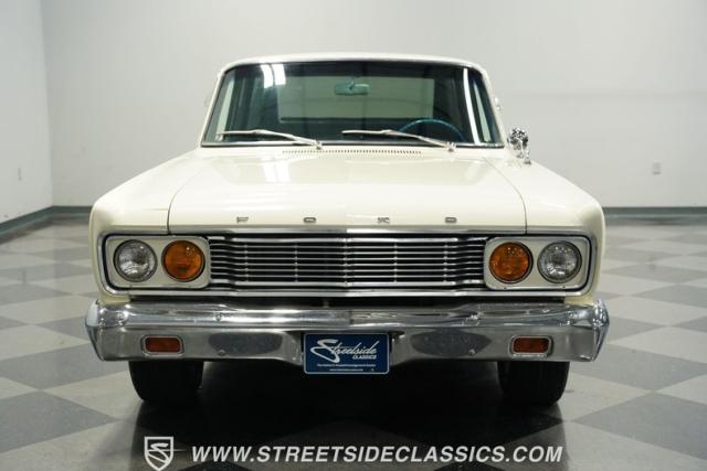 Raise the hood and you\'ll see a nice, clean engine bay. At its center, a 289 cubic-inch V8 stands by, ready to roll. It pairs with a 3-speed C4 automatic transmission to make up a period-correct drivetrain. Both the Ford 289 and C4 are known to be reliable, and fittingly, they\'re in good form here, providing prompt starts, smooth acceleration, and slip-free shifting. With a rebuilt suspension up front and air shocks added to the mix in back, this Ford classic offers a smooth ride, while power disc brakes at both ends provide reliable, fade-resistant stops as this rarely seen ride cruises on a set of 15\" Ion alloy wheels