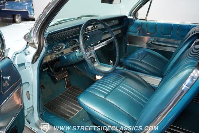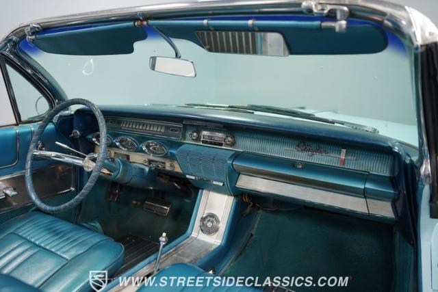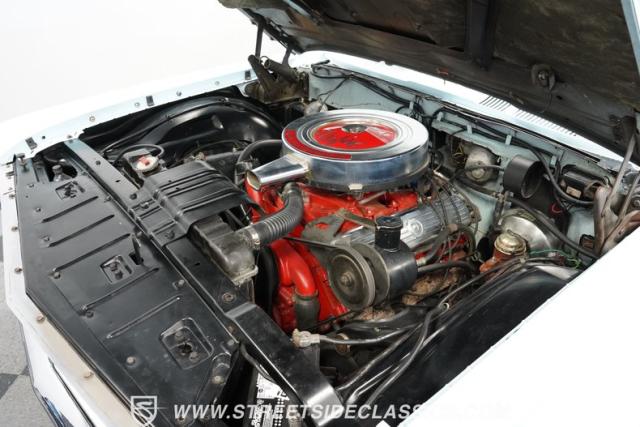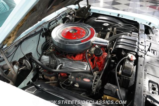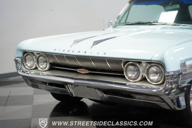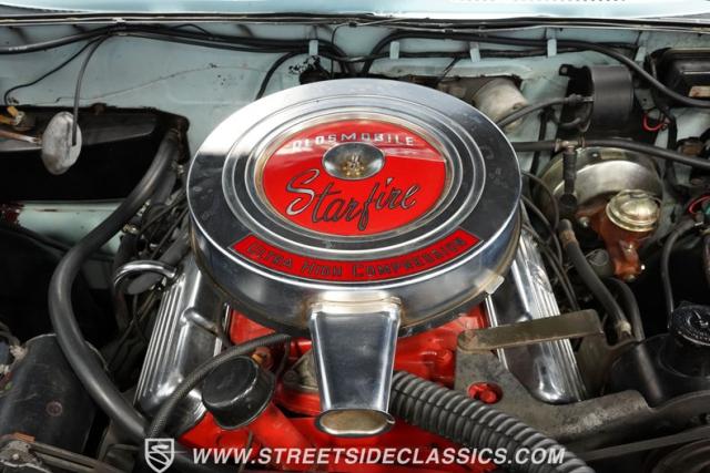 Oldsmobile\'s robust 394 cubic inch V8 engine powers this convertible. It pairs with a 3-speed Roto Hydra-Matic transmission, delivering smooth acceleration. The dual exhaust system provides a fitting soundtrack for cruising. Power steering makes maneuvering effortless, while power drum brakes bring this substantial convertible to a confident stop. This Starfire\'s mechanical components showcase Oldsmobile\'s engineering prowess of the early 1960s.