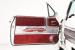 The interior is the best part of the car. Someone clearly spent good money on the genuine leather upholstery. The door panels are especially stylish, and the upper sections have been upholstered in fresh leather. The seating is very cool too, with bucket seats up front and a rear seat shaped to match. The leather extends to the seat sides as well, giving it a rich, upscale feel. The dash is full of character with plenty of trim and unique shapes, plus the clear plastic detail over the glove box and a really cool steering wheel. Even the pedals have flair. There is a modern stereo hidden in the glove box that powers the custom door panel speakers. Features include a console-mounted tachometer, power windows, power seat, Wonderbar radio, front seat belts, and a speed warning indicator.