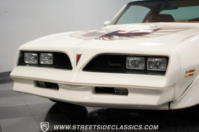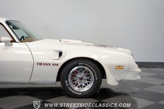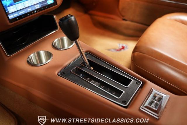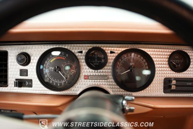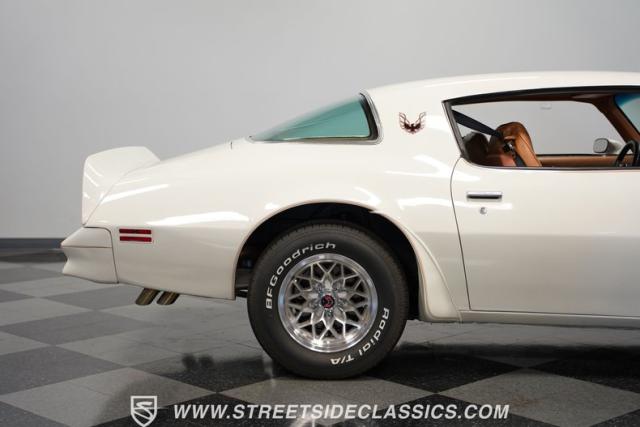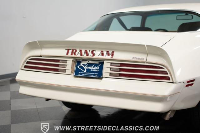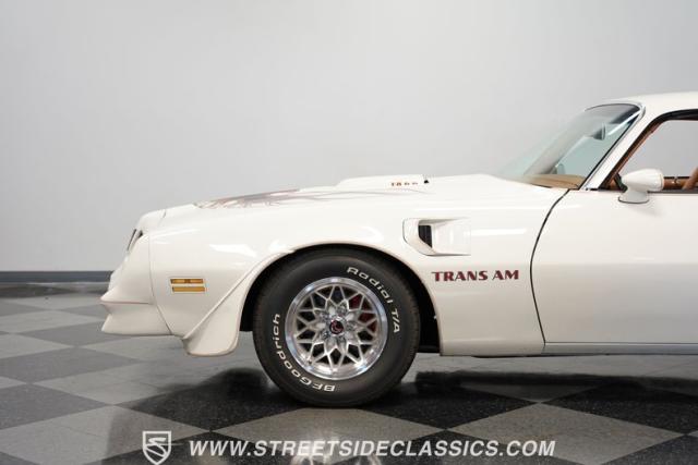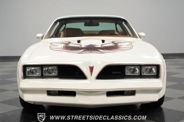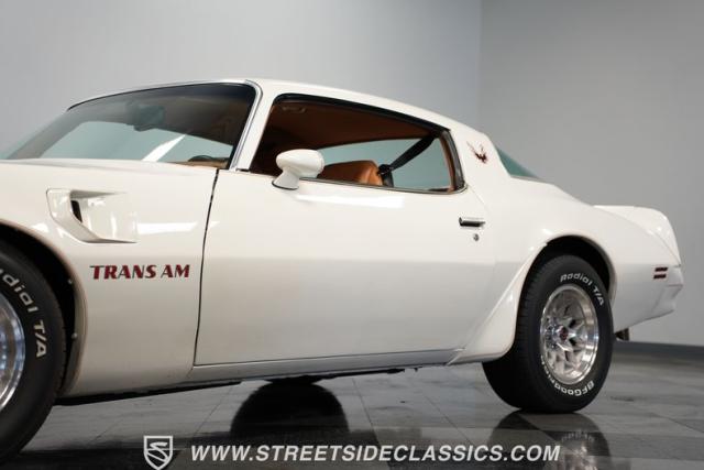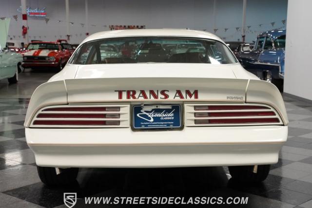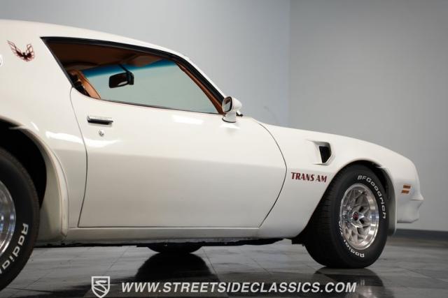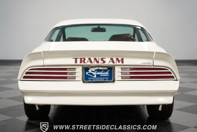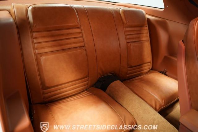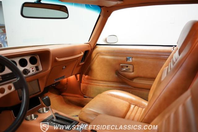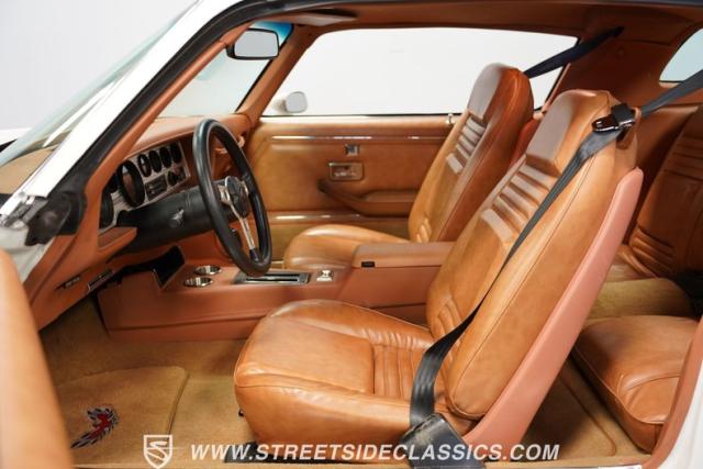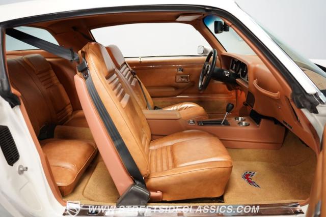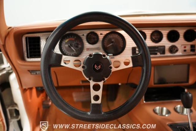 The tan interior exudes a blend of comfort and style. New Legendary Deluxe vinyl seat covers and door panels complement the fresh carpet, creating a cohesive look. A Dakota Digital dash brings modern functionality to the classic cockpit. The Alpine touchscreen radio with a backup camera and Infinity speakers elevate the audio experience. Convenience features include power windows, door locks, and trunk release. Electric cruise control and an alarm system with a remote round out the interior upgrades, making this Trans Am as comfortable as cool.