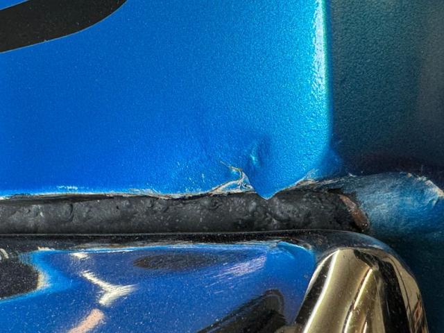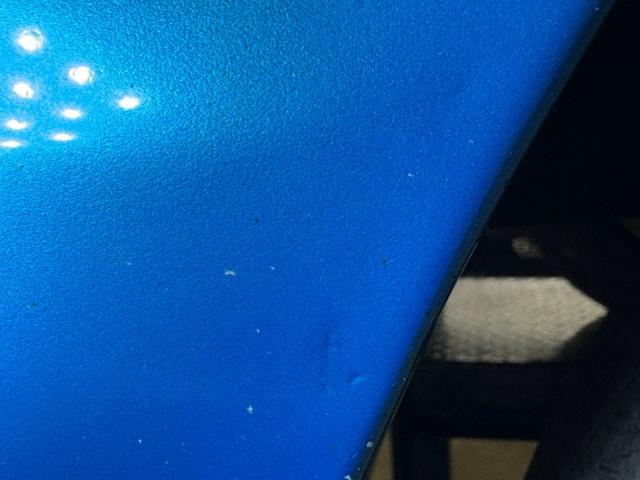 Even the hood scoop couldn\'t contain the engine as the air element protruded out of the top of the black intake the straddles matte black stripe on the pinned hood, contrasting sharply with the attractive Bright Blue Metallic paint. Of course, you have to have the side stripes as well which include a 340 at the tail end, likely the end competitors will see. The double stripe continues out back behind the distinctive slit style tail lights while dual oval exhaust tips make an appearance under the chrome bumper. 15-inch Weld Prostar wheels provide the shoes and are wrapped in staggered size tires that contribute to a slightly raked stance. Cracks, scratches, and bubbling in the paint are noted in several spots as well as some flaking filler make the list of imperfections on the exterior.