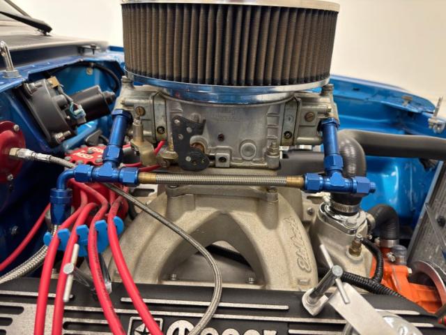 Here\'s where things get serious and aside from the engine and bay being show ready spotless, it\'s also built. Ray Barton Race Engines put this together and invoices from the build will come with the car along with the dyno sheet showing 585.61 horsepower. The 424ci stroker V8 includes a 340 R block, Molnar crank and rods, Diamond pistons with moly rings, a Billet roller timing chain set, an ATI balancer, and a Bullet Racing cam with .645i/630e lift, 274i/280e duration @.050. The heads are Edelbrock Victor heads with ARP head studs and Harland Sharp roller rockers. Up top, an Edelbrock Victor intake is capped by a Dominator 4500 4-barrel carburetor. The A727 Torqueflite 3-speed automatic transmission includes a reverse manual valve body and 10\" TCI 3,800 stall converter with power routed to an 8 \" rear with 4.88 gears. Wilwood disc brakes are at all four wheels to bring the ponies to a slow trot.