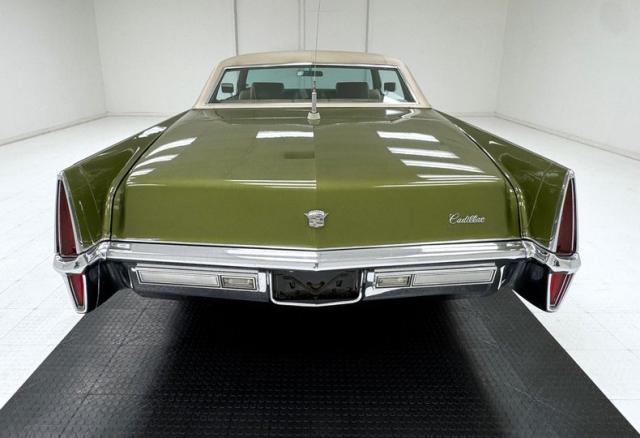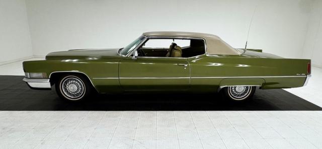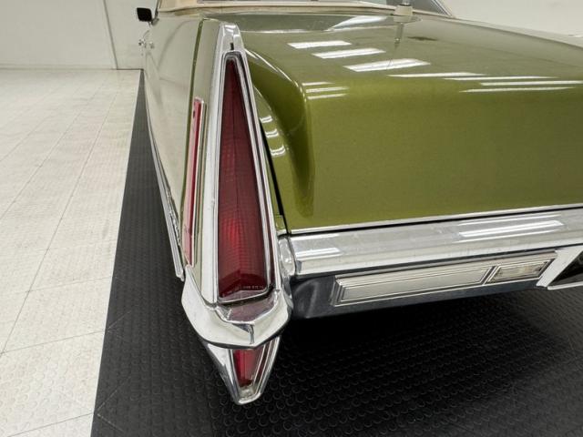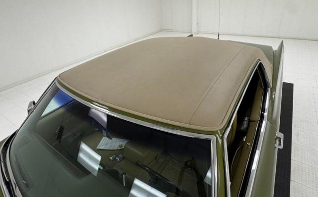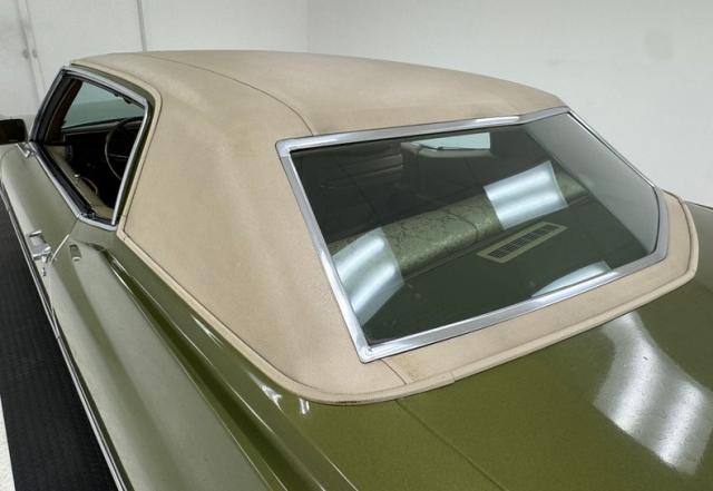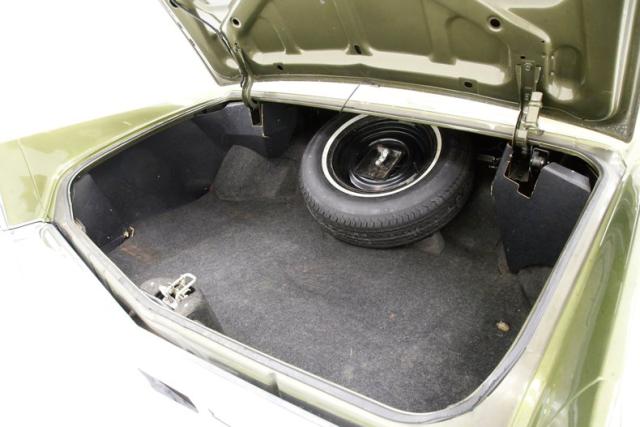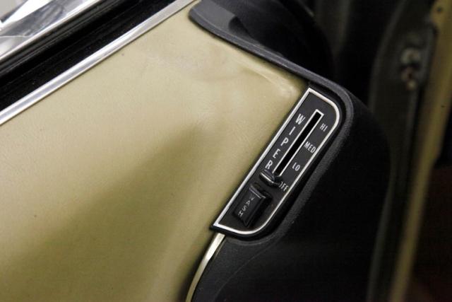 The obsession with chrome had ended in the mid 1960\'s. It was still used, but only in key points of the overall construction. This green respray named Bayberry Metallic and is much like avocado green, is not without that chrome jewelry in that the massive bumpers, horizontal dual headlights, and front V shaped grille. A solid steel roof wrapped in cream vinyl covers the passenger compartment. Steel panels are straight, however on either side of the front quarters just behind them wheel wells there is an area that has invasive rust right through the inner panels of the undercarriage. A small trim spear, which begins just above the wrap-around front ribbed signal and running lighting, runs the length of the car to the triangular pointed tail lights that stick out above on the rear quarters. Not a fin, but certainly prevalent and framing the NYC 3 bedroom apartment size trunk on either side. The long hood is impressive as well and not to be outdone by the trunk is even longer in its run from the grille to the front windscreen. Chromed wire spoked wheel coverings are wrapped by tasteful thin whitewall rubber on all 4 corners.