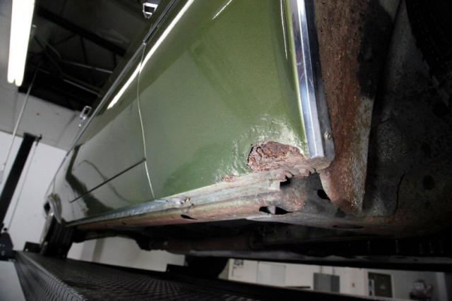 She fired right up and after a nice warmup it gave me a nice slow boil on the test track...meaning nice acceleration, good handling for a large vehicle, and ultra smooth ride. Braking is top notch, and comfort and conveniences showed the AC is not blowing cold, the clock is not working and the radio is stuck on seek. Also getting in and out, the respray does not cover the door jambs or thresholds which are the original green paint from the factory.
