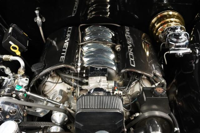 Powering this restomod is a 5.7L LS1 V8 engine, paired with a 4L60E 4-speed automatic transmission. This powerplant delivers ample performance, backed by a dual exhaust system with MagnaFlow mufflers and an X-pipe for a rich, throaty sound. The upgraded suspension features Heidts components up front and custom trailing arms in the rear, providing modern handling characteristics. Four-wheel power disc brakes ensure confident stopping power, while power steering makes maneuvering this classic a breeze. An aluminum radiator with dual electric fans keeps everything cool, even in traffic.