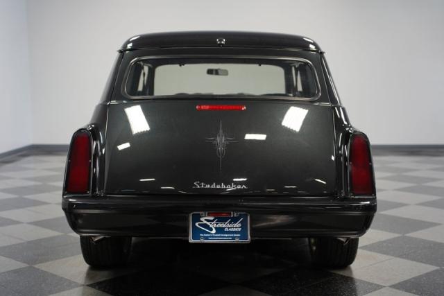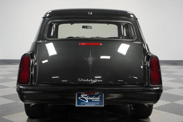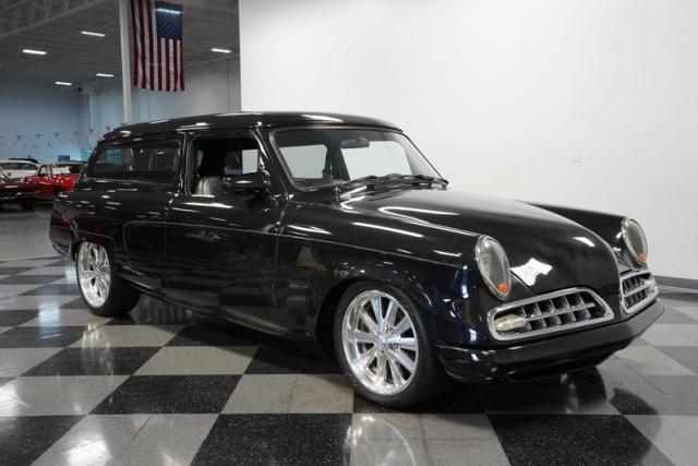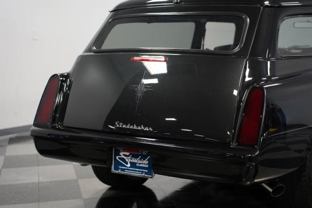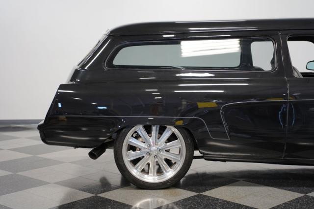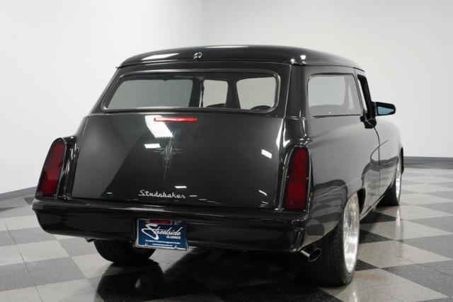 This 1954 Studebaker Wagon Restomod is a rolling fusion of classic American design and modern performance. The sleek Black Pearl finish accentuates every curve of this iconic wagon, with subtle ghost flames adding an extra layer of intrigue. Chrome Foose wheels, 18\" up front and 20\" in the rear, provide a bold, eye-catching, and functional stance. Shaved door handles with poppers and custom side mirrors contribute to the clean, streamlined look that sets this Studebaker apart from the pack.