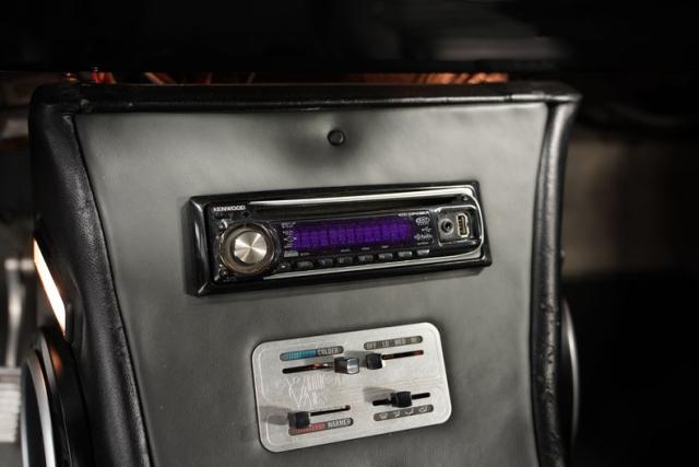 The black leather interior strikes a balance between comfort and style. Power bucket seats up front and a rear bench offer ample space for cruising. A custom center console houses modern amenities, while classic instrument gauges maintain a period-correct feel. The tilt steering column, billet-style pedals, and Kenwood CD radio blend seamlessly with the vintage aesthetic. Comfort is assured with power windows and Vintage AC, preparing this wagon for any road trip.