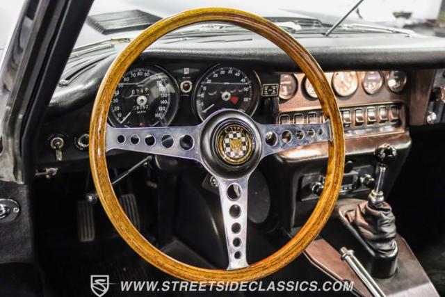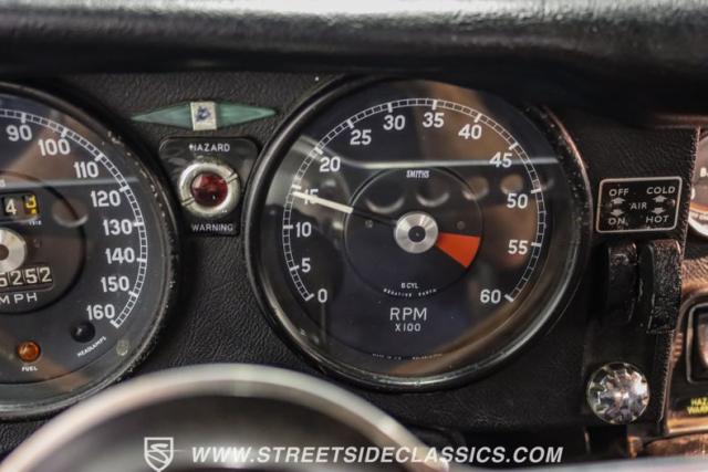 The original numbers matching 4.2L DOHC inline-six engine pairs with a 4-speed manual transmission, delivering authentic British performance through dual Zenith-Stromberg carburetors. The independent suspension system features shocks and sway bar up front, with dual shocks and springs in the rear. Power disc brakes at all four corners provide strong stopping power. The Jaguar IRS (Independent Rear Suspension) system and rack & pinion steering create precise handling characteristics.