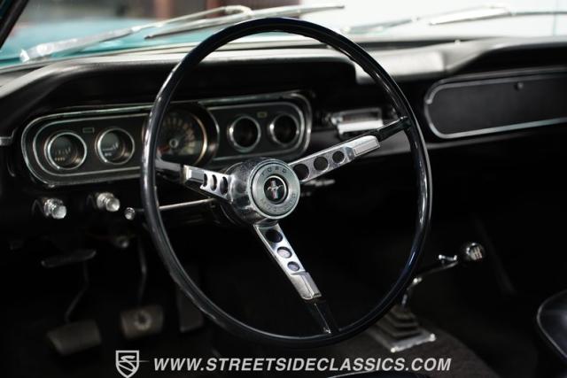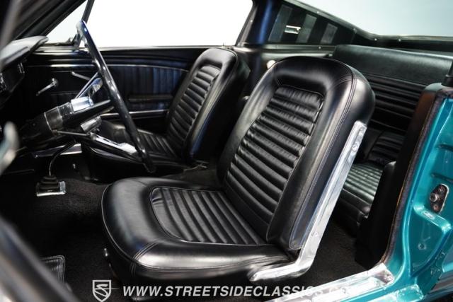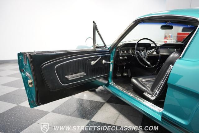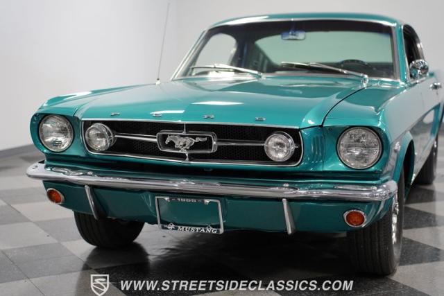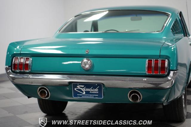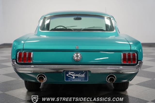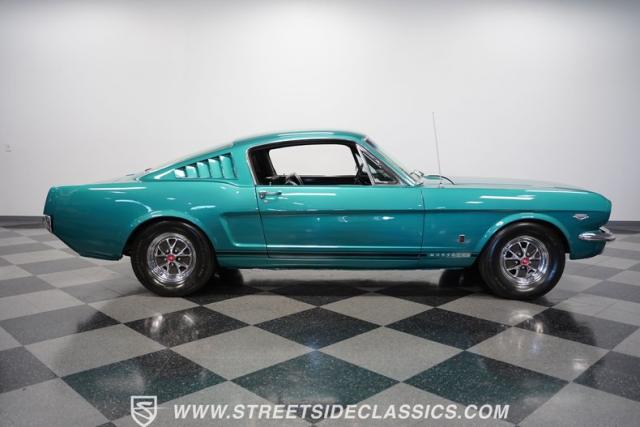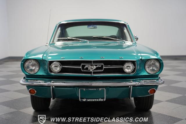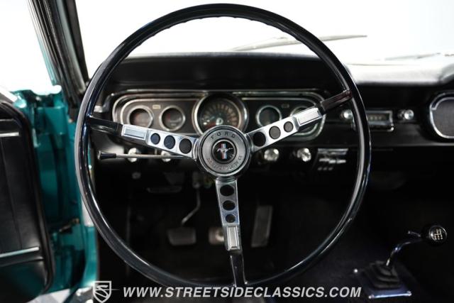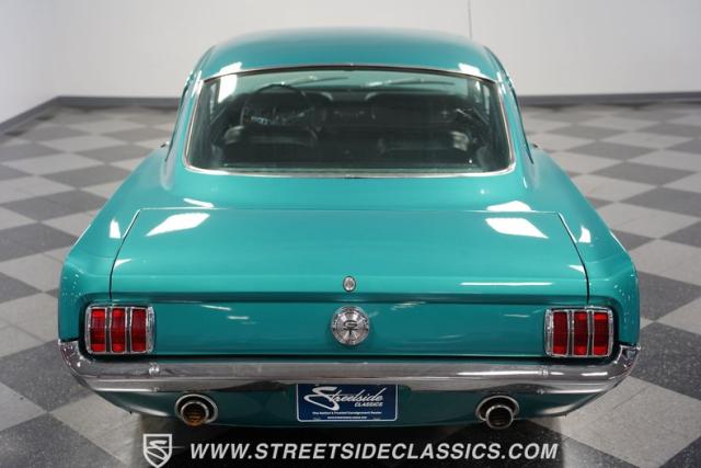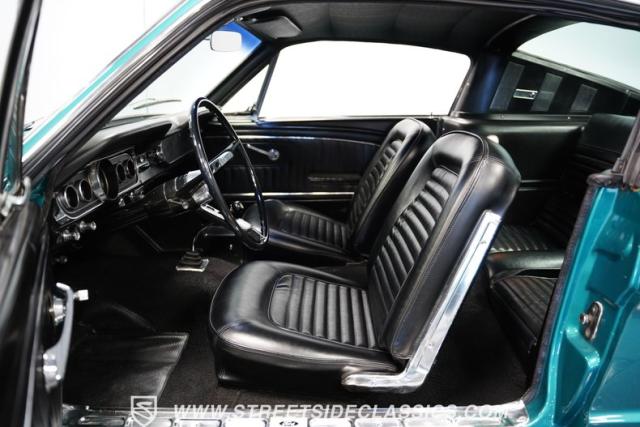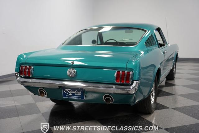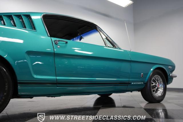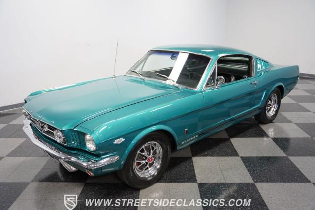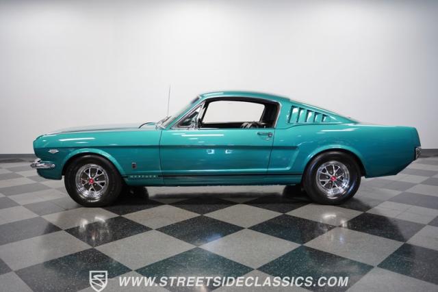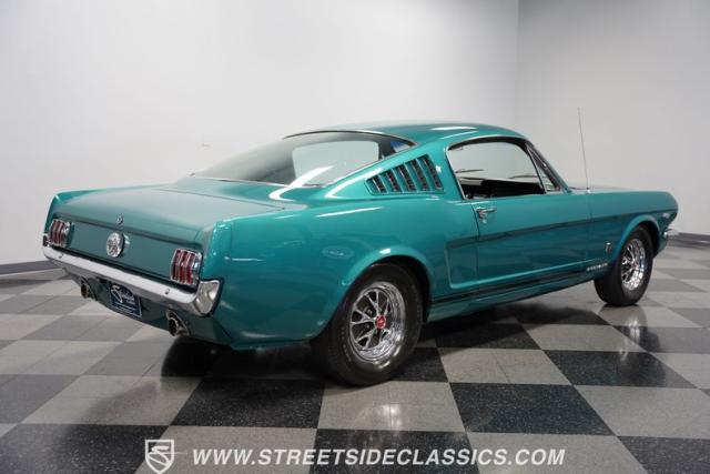 Cruising through time with a color that turns heads and an engine that roars with each turn of the key, this 1965 Ford Mustang GT Fastback paints the streets in a shade of Tropical Turquoise that\'s as refreshing as a dip in a calm ocean on a hot summer day. Equipped with chrome wheels wrapped in Michelin tires measuring 215/70R14, this Mustang is not just about its striking looks. The full repaint, complemented by GT badging and trim and trumpet-style exhaust tips, elevates it to a masterpiece of the muscle car era.