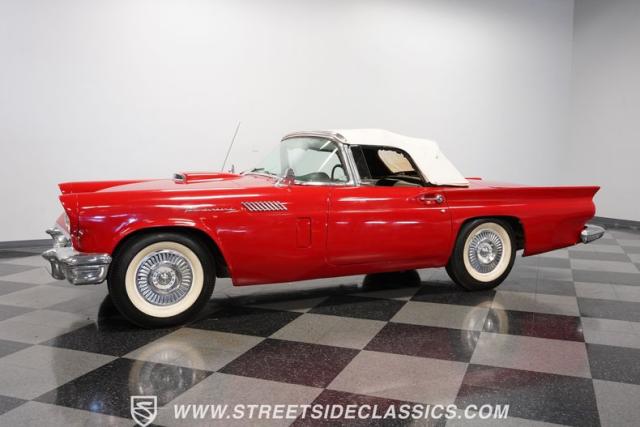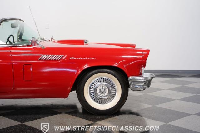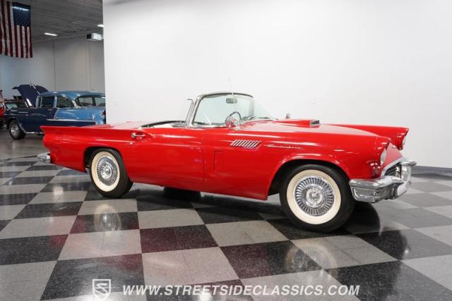 Although 1957 may bring to mind one specific car, one look at this 1957 Ford Thunderbird, and it\'s easy to see that the Blue Oval\'s top-tier droptop was one of the most beautiful cars to ever emerge from that (or any) decade. Dressed in this eye-catching red with its contrasting white removable hard top, this classic beauty comes with all the chrome and badges to remind the world just how special this car is.