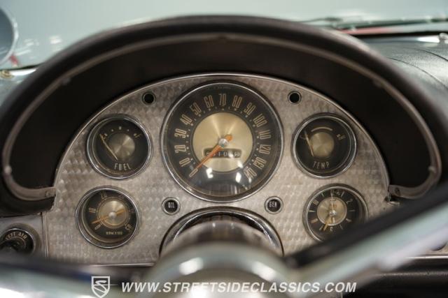 We find a black and white pleated vinyl interior with an original-looking dashboard complete with its five-pot gauge cluster, AM radio, and AC ducting. The three-spoke double-rimmed steering wheel features a Thunderbird logo center cap to remind anyone driving that they are piloting a true classic.