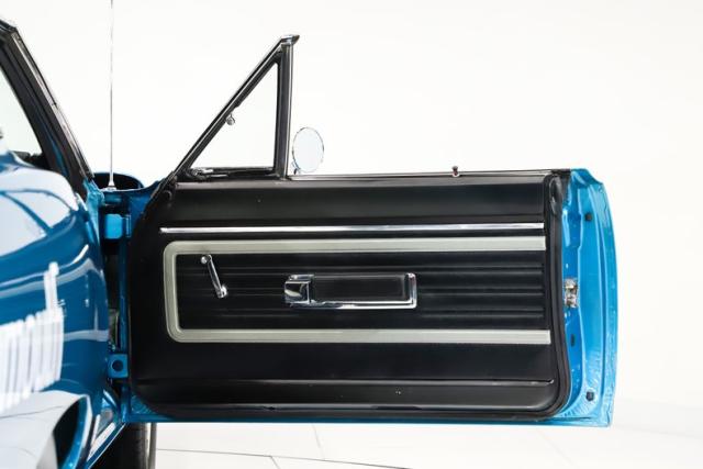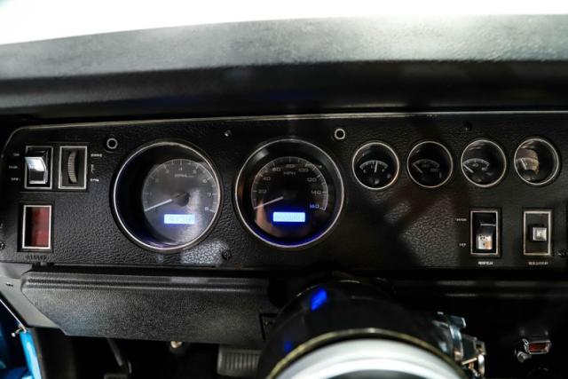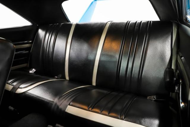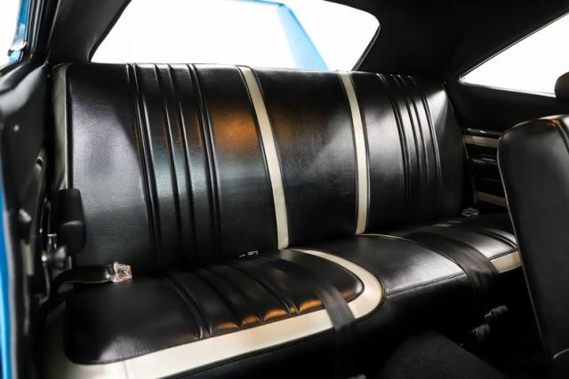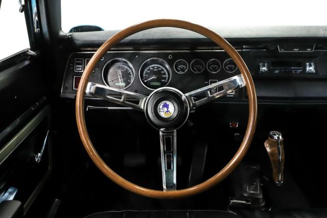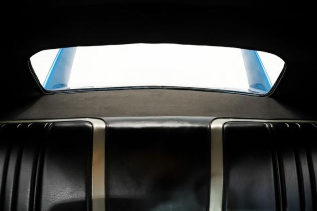 EXTERIOR: The body was restored from a bare shell that was professionally acid dipped, with new quarter panels installed during the build. There is zero rust! It is straight from front to back with excellent panel fit, the doors close properly and the headlights open as they should. Retaining its original aerodynamic nose cone and rear wing, this Superbird also features the aerodynamic windshield pillar covers and pushed out rear window that made the design legendary. It has been refinished in its original B5 Blue color with a deep, glossy shine, while the bold Superbird decals have been replaced. The restoration went further with new glass throughout, along with refreshed chrome and trim. The vinyl top is new, weatherstripping has been replaced, and it sits proudly on a brand new set of 15x8 Rallye wheels wrapped in new BFGoodrich tires that are fatter in the rear for an aggressive stance.