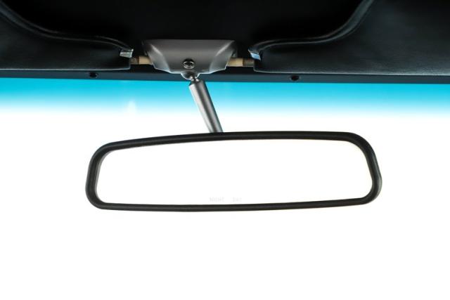 TRUNK COMPARTMENT: Fully refinished in B5 Blue and the trunk floor is solid metal throughout. The weatherstrip, trunk mat, rear seat divider, and wiring have all been replaced for a clean, functional presentation.