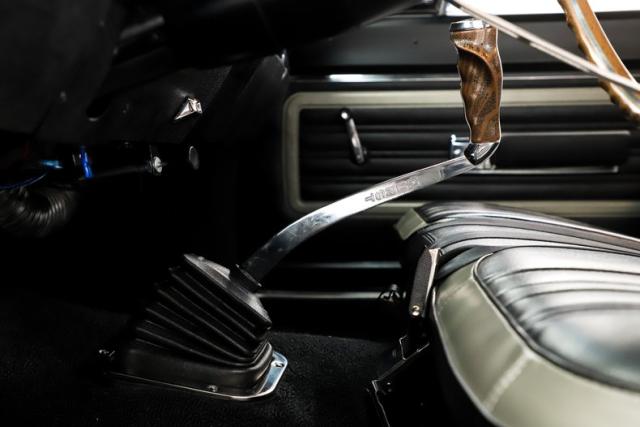 UNDERSIDE: Virtually brand new throughout. Up front, it\'s been upgraded with a Control Freaks suspension and steering system, featuring tubular control arms, coilover adjustable gas shocks, and rack & pinion steering for precise handling. In back it has new leaf springs, bushings, and shocks. It has an all new Wilwood brake system- lines, hoses, and e-brake cables and it\'s upgraded with drilled and slotted disc brakes at all four wheels. It also features a great sounding custom TTI exhaust with an X-pipe, exiting through the factory tips. The fuel system has been completely replaced, including the tank. Looking up at the motor, everything is fresh, including an extra capacity oil pan. It has a rebuilt 18 spline 833 4-speed transmission, and the rebuilt driveshaft leads back to its original Dana 60 rear end with 3.54 Sure-Grip gears that has recently been serviced. The underbody is exceptionally clean, it has its original floors including the 4-speed \"hump\". No rust, just solid clean metal painted B5 blue. It\'s been reinforced with welded subframe connectors from front to back for added strength and stability.