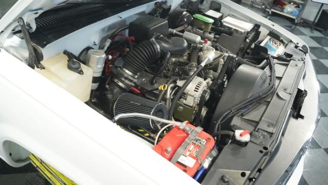 The original 350 Vortec V8 received recent updates including a 525 cam and lifter package. A 700R4 4-speed automatic transmission with mild stall converter channels power through 5.13 gears and one-ton axles. The suspension system features \"Big Shocks\" coilovers with S series reservoirs, along with a solid axle 4-link setup and panhard rods front and rear. Summit Racing stainless shorty headers feed into dual exhaust for an authoritative sound.