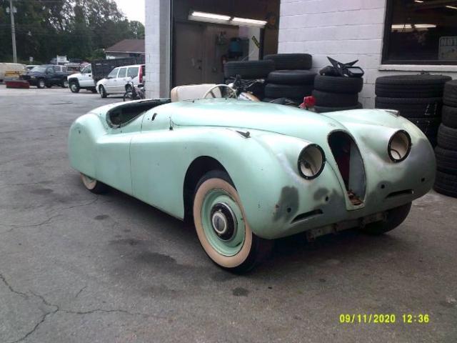 1951 Jaguar XK 120. This car is a project, it has been sitting for many years. The cylinder head, and other parts are missing. The engine in the car is numbers matching. This car is 6 cylinder, twin cam, and 4 speed manual transmission. This Jaguar is green with a blue interior. cylinders: 6 cylinders fuel: gas odometer: 99,999 paint color: green title status: clean transmission: manual type: convertible Please Note The Following **Vehicle Location is at our clients home and Not In Cadillac, Michigan. **We do have a showroom with about 25 cars that is by appointment only **Please Call First and talk to one of our reps at 231-468-2809 EXT 1 ** FREE Consignment Visit Our Site Today Easy To List Your Vehicle and Get it Sold in Record Time.