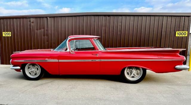 1959 CHEVROLET EL CAMINO, FIRST YEAR PRODUCTION: 22,246 UNITS HERE\'S A VERY EXCEPTIONAL CHEVROLET EL CAMINO, FULLY RESTORED, AND CUSTOMIZED AS A TRIBUTE TO GM\'S CHIEF DESIGNER HARLEY EARL. THE HIGH LEVEL ENHANCEMENTS, FIT, AND FINISH, SCORED A FIRST PLACE CUSTOM TRUCK CLASS FINISH AT THE PRESTIGIOUS 2024 GNRS, 2/2-4/24. THE NUMEROUS RESTOMOD FEATURES, THAT TOTALED 3,000+ HOURS, AND $$$,$$$+ INCLUDED THE FOLLOWING: 1. GM 348 CU. IN. \'W\' BLOCK, FACTORY TRI-POWER CARBURETORS, WITH A HIGH TORQUE RV CAMSHAFT, 1/2 PT COMPRESSION REDUCTION, ADD HARD VALVE SEATS + SILICON BRONZE GUIDES, ALL PROVISIONS REQUIRED FOR UNLEADED PUMP GAS OPERATION. 2. ADVANCED MUNCIE 4 SPEED, PLUS HURST SUPER SHIFTER W/O REVERSE LOCKOUT FEATURE, AND HP PERFORMANCE 2-PC DRIVELINE. 3. QA-1 COIL OVER SHOCKS, TUBULAR CONTROL FRONT SUSPENSION ARMS, REAR LINKS/ADJUSTABLE 3RD LINK/ ADJUSTABLE PANARD BAR, PLUS FRONT + REAR TORSION BARS. 4. FOUR WHEEL DISC BRAKE, DUAL MASTER CYLINDER SYSTEM, DRILLED+ SLOTTED ROTORS, STAINLESS STEEL BRAKE AND FUEL LINES, WITH AN EMERGENCY BRAKE SYSTEM. 5. MANDREL BENT, DUAL STAINLESS STEEL EXHAUST SYSTEM. 6. VINTAGE AIR CONDITIONING/HEAT GEN IV, MAGNUM R134 SYSTEM, OEM CONDENSER, PLUS ADVANCED A/C COMPRESSOR. 7. DAKOTA DIGITAL RTX GAUGE CLUSTER, PLUS COMPLETE AMERICAN AUTOWIRE RETROFIT, MSD HEI IGNITION SYSTEM, AND POWERMASTER 12V/90A \'POWERGEN\' ALTERNATOR. 8. 1959 VINTAGE AM/FM/BLUETOOTH 4 X 45W/CH WONDERBAR STEREO, GM TILT WHEEL, POWER: WINDOWS, VENTS, 6-WAY SEAT, ANTENNA. 9. CUSTOM FULL LEATHER INTERIOR, NEW DATED CODED/TINTED GLASS, CUSTOM 1950\'S INDY 500/KNOCK OFF KIDNEY BEAN STYLE 18\' WHEEL SET, MICHELIN 255/R5518 RADIAL TIRE SET, EXTENSIVE INTERIOR + EXTERIOR+ ENGINE COMPARTMENT CHROME PLATED COMPONENTS. 10. COMPETE EXTENSIVE BODY MEDIA BLAST, NEW SHEET METAL PANEL REPLACEMENTS OF: TOE BOARD, FULL FLOOR PAN, REAR SEAT PAN, BOTH REAR QUARTERS, AND BED. PROFESSIONAL STRAIGHTENING + POLISHING OF: ALL STAINLESS STEEL