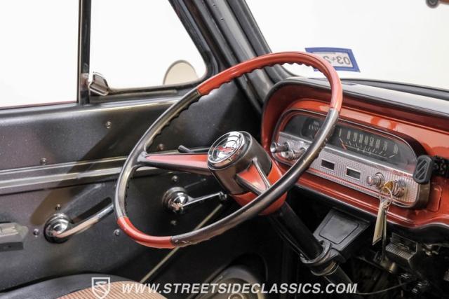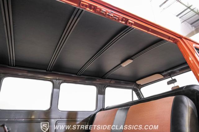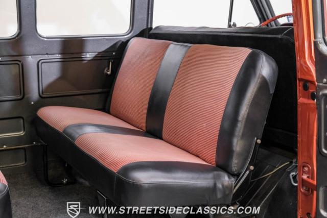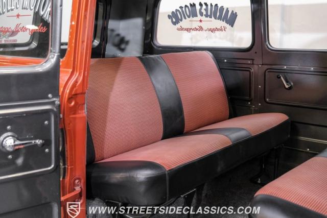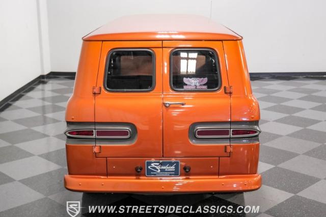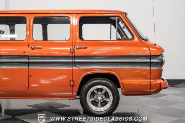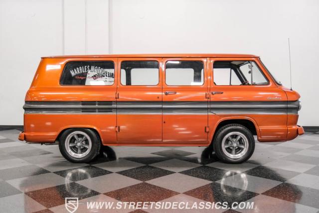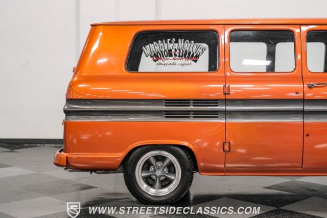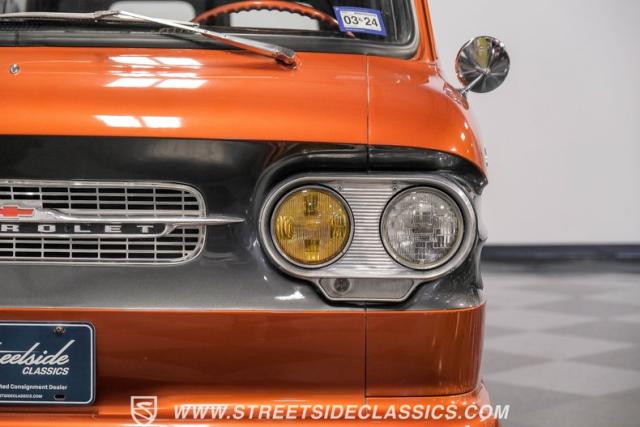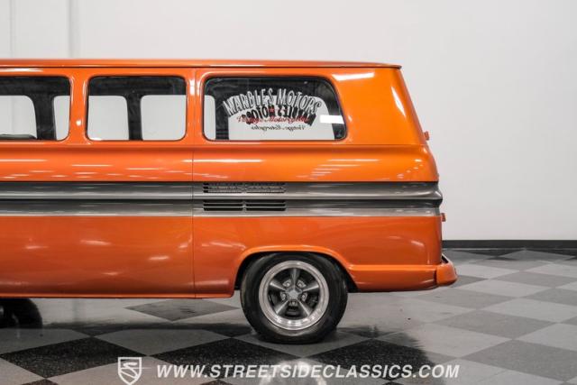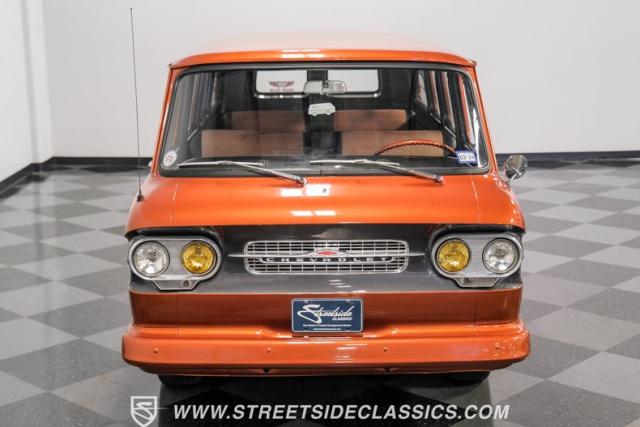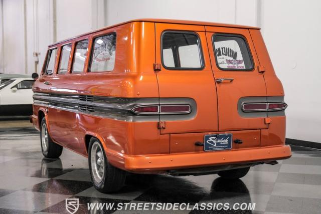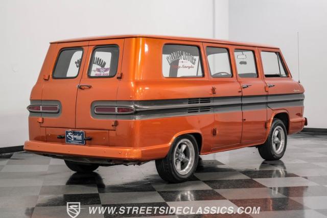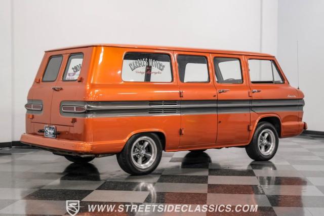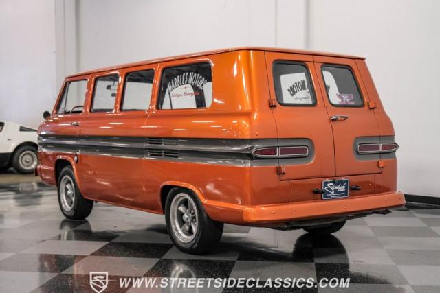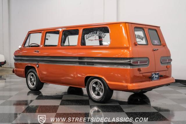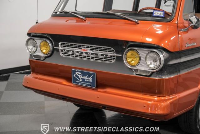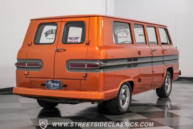 This 1962 Chevrolet Corvair Greenbrier is a ride as unique as it is unforgettable. Sporting an eye-catching Mango Tango and Graphite Metallic two-tone paint job, this van gleams in the sun, thanks to its metallic flake finish. Painted bumpers and straight body lines highlight the craftsmanship poured into this restoration, making the Greenbrier a rolling work of art. The 15\" US Mags wheels wrapped in 205/65R15 Milestar tires provide a confident stance.