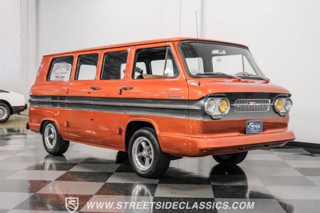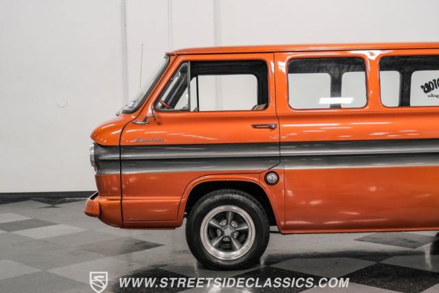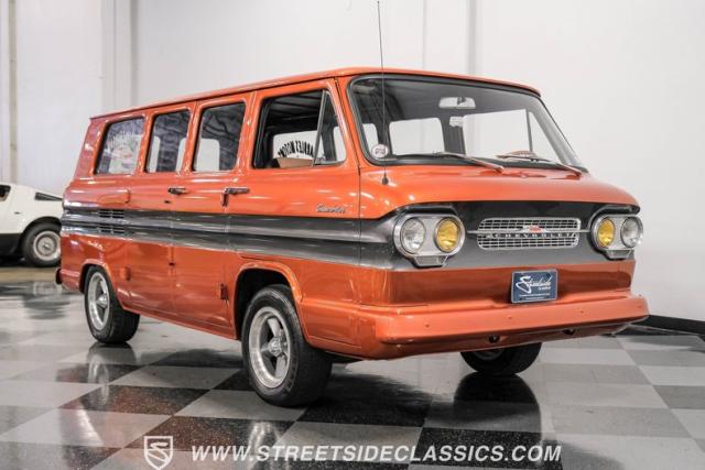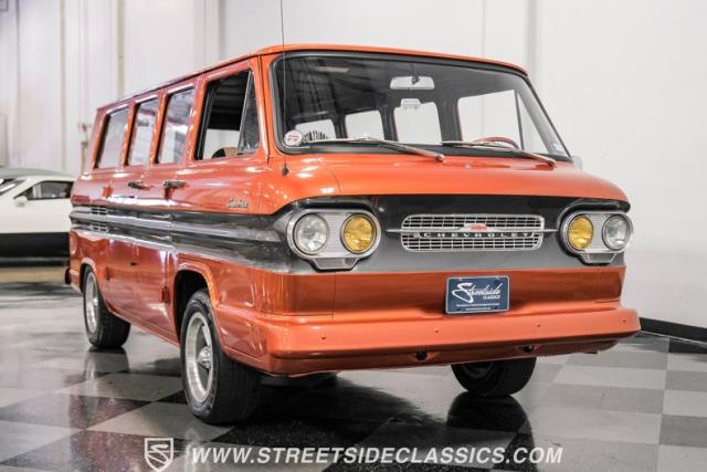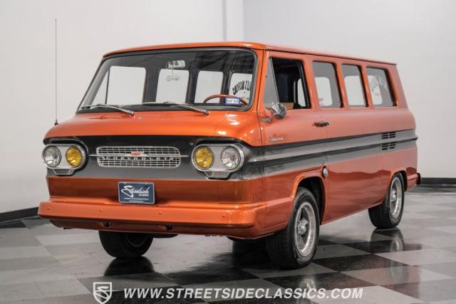This 1962 Chevrolet Corvair Greenbrier, with its rebuilt 2.4L flat-six engine, eye-catching Mango Tango and Graphite Metallic paint, and tastefully updated interior, is ready to make memories. As a rare specialty model that made up only about 5% of total Corvair production in 1962, this van is a true collector\'s item. Call today!