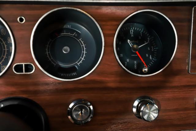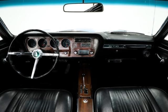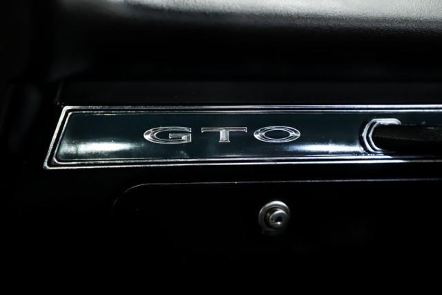 INTERIOR: It is wonderfully nostalgic, having been restored back to 100% factory condition. Slide behind the wheel and you\'re instantly transported to 1967. One of the coolest features is the iconic Hurst Dual/Gate shifter mounted in the center console, a signature muscle car touch that adds both style and function. Fresh carpet fits nicely on the floor, and it comes complete with a full set of GM seat belts. The seats have good cushion and have been fully reupholstered, while the door panels and armrests have also been replaced. The dash area is especially clean and well preserved, showing no signs of abuse. It features a new dash pad along with the proper woodgrain insert, and the original radio remains in place. The interior lights are working, including the glove box light, where you\'ll also find a new glove box liner. Out back, the rear mesh speaker tray has been replaced, along with a nice tight fitting headliner overhead. The original steering wheel does have a couple of typical cracks, but otherwise this interior captures the look and feel of a fresh 1967 GTO beautifully.
