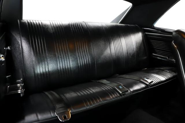 ENGINE COMPARTMENT: Under the hood is the correct 400, properly date coded and stamped for the car. It has reportedly been rebuilt internally to H.O. specs and has a factory stock appearance on the outside. It retains the correct manifolds, and carb, along with fresh factory style valve covers and air cleaner assembly, giving the engine a detailed presentation. The pulleys, brackets, wires, and hoses all appear proper and fresh, showing careful attention to detail throughout. This is also a factory air conditioned car, and the system is functional for added comfort on warm days. Power steering makes cruising easy and enjoyable, while the stock cooling system keeps the engine running as it should. Finishing touches include a Delco battery topper, reproduction spring clamp battery cables, and a properly secured battery. Even the windshield washer squirters are hooked up, and all the metal finishes throughout the engine bay are painted and detailed very nicely.
