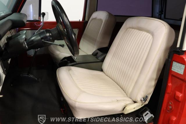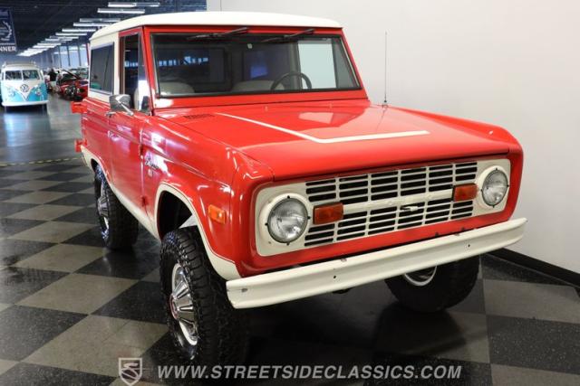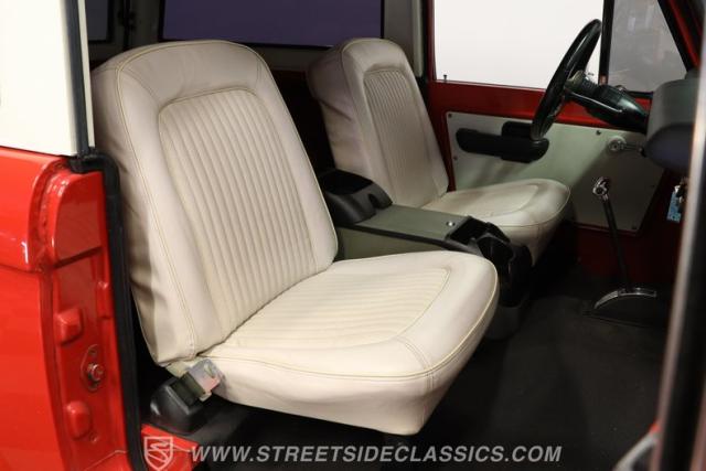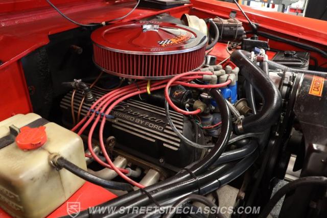 Looking sharp and possessing a level of factory-correctness that\'s hard to come by, this 1972 Ford Bronco 4x4 represents its long-coveted model at a very cool point in its aesthetic history. Refreshed in Candy Apple Red, the exterior of this classic really presents well, with excellent gloss and painted white stripes running along its sides that show clean edges. Take a closer look, and you can see its visual connection to its counterparts from the present, and yet it\'s got an appearance all its own that\'s equal parts spartan and capable. Those smaller visual details that make for a finished classic have been taken care of, leaving it with trim, lights, and glass in good condition and badging that\'s securely in place. Not only is the accompanying white-painted hard top in solid shape, but unlike some of the later-arriving Bronco models, it is removable should you want to enjoy this iconic SUV in its open-air form.