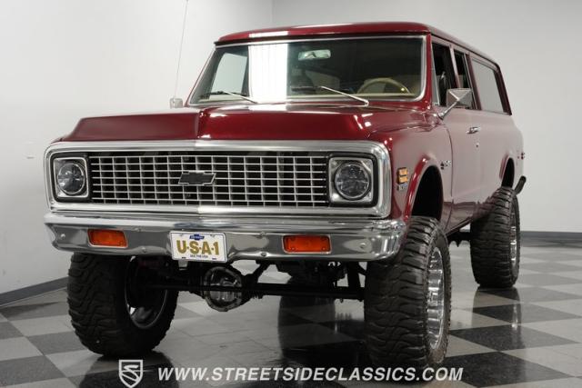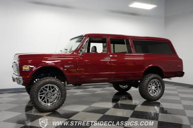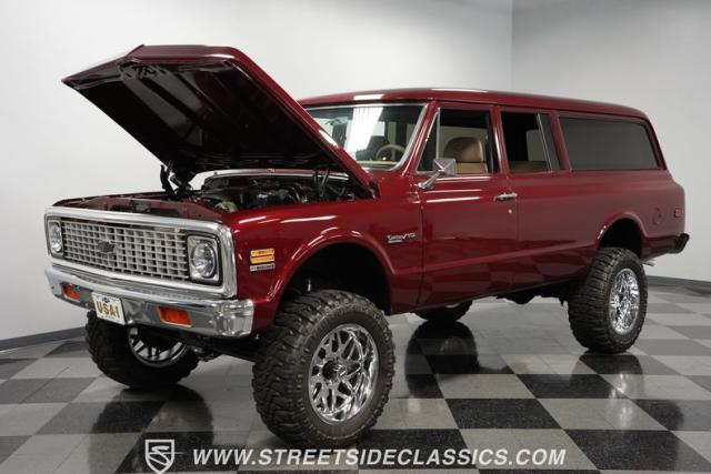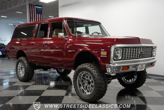 The 1972 Chevrolet Suburban 4X4 Restomod combines classic style with modern performance. With its potent 5.3L LS V8, comfortable leather interior, and aggressive stance, this SUV is ready for both show and go. Call today!