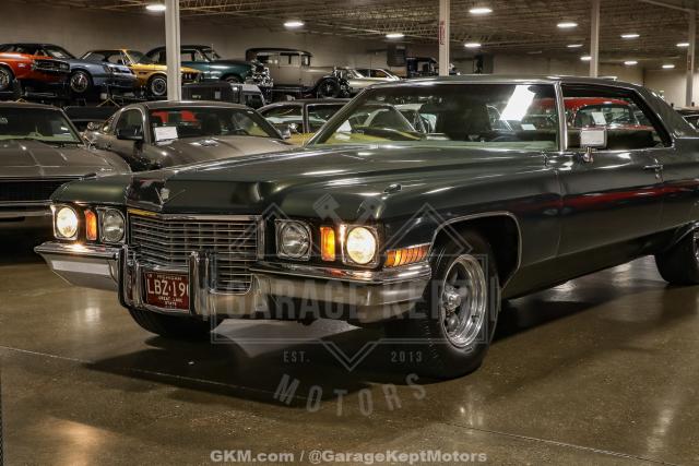 1972 Cadillac DeVille2-Door Hardtop Coupe- Detroit Car- Upgraded 454ci V8- Automatic Transmission- Green Metallic over Tan Interior- Upgraded Gauges and Steering Wheel- American Racing Wheels- Power Steering and Power Locks- 84k Miles ShownThe 1972 Cadillac DeVille 2-Door Hardtop Coupe captures the bold luxury and commanding style of early 1970s American automobiles. Originally a Detroit car, this example presents beautifully in Green Metallic over a Tan interior, a combination that highlights its presence and elegance. With its long, flowing body lines and signature Cadillac styling cues, the DeVille stands as an unmistakable symbol of the brand\'s dominance in the luxury car market during this era.Under the hood, this DeVille has been upgraded with a 454ci V8, giving it a stronger performance edge over the factory engine. Paired with an automatic transmission, the car delivers smooth cruising power while maintaining the effortless driving experience Cadillac was known for. The combination of a big-block upgrade and Cadillac refinement makes this example unique, offering both classic luxury and muscle-inspired performance.Inside, the Tan cabin has been tastefully enhanced with upgraded gauges and a custom steering wheel, providing a driver-focused touch while preserving the spacious comfort expected from a Cadillac. The coupe\'s hardtop design ensures wide-open visibility and an airy cabin feel, while features such as power steering and power locks add to its usability. This blend of comfort, luxury, and subtle customization makes it a standout driver-friendly classic.Rolling on American Racing wheels, the DeVille adds a hint of sportiness to its otherwise elegant profile. With 84k miles shown, it reflects careful use over the years while still offering plenty of road life ahead. For enthusiasts seeking a full-sized American classic with tasteful upgrades and timeless Cadillac style, this 1972 DeVille presents an appealing mix of luxury, presence, and performance.