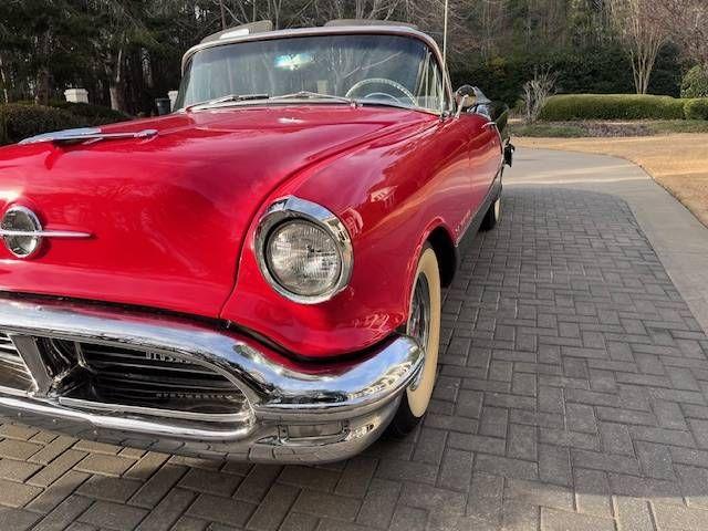 1956 Oldsmobile Starfire 98 Convertible Fiesta Red Show Quality Stunning and rare 1956 Oldsmobile Starfire 98 Convertible, the flagship of the Ninety-Eight series and widely considered one of the high-water marks of 1950s automotive styling. Finished in Fiesta Red over Black with a Black & White deluxe leather interior and Black Haartz canvas soft top, this example has undergone a comprehensive restoration including exterior, interior, brightwork, top, and mechanicals. Powertrain: Rocket V8 324 cu in (5.3L) 4-barrel carburetor 240 horsepower Hydra-Matic 4-speed automatic Dual exhaust 9.25:1 compression Features & Options: Power steering Power brakes Power windows Power seat Power convertible top Deluxe push-button radio Deluxe heater/defroster Electric clock Tinted windows Courtesy lamps Backup lamps Turn signals Day/Night mirror Rear fender skirts Continental kit Wide whitewall tires (8.10x15) Kelsey Hayes chrome wire wheels Presentation: Show-quality undercarriage, engine bay & trunk Magnificent jet-style hood ornament Original owners manual, sales literature & shop manual included Highly optioned and believed to be one of only a handful remaining in this color combination and condition. An immaculate, arrow-straight Starfire that draws admiration wherever it goes equally suited for show or touring. Important Information Please Read Before Inquiring Vehicle Location: This vehicle is located at our client\'s home, not in Cadillac, Michigan. Showroom Access: We have a showroom with approximately 35 vehicles, available by appointment only. Contact First: Please call us at 231-468-2809 EXT 1 to speak with one of our representatives before visiting. FREE Consignment Sell Your Vehicle Fast! List your vehicle effortlessly and get it sold in record time! Easy process High visibility Professional support https://www.classiccardeals.com/Page/Consignment.aspx