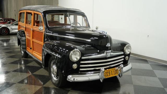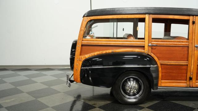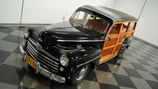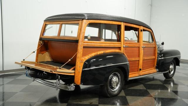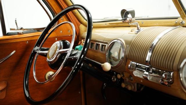 The 1948 Ford Super Deluxe Woody Wagon was quite expensive when new because it was a craftsman-built car. This example carries on that tradition with a six-figure restoration that makes sure this one looks beautiful and feels authentic. So it impresses for far more than just showing off the joints of the wood body. This is detail-oriented, right down to the leather on the seats and original AM radio that\'s been converted to AM/FM/AUX. Plus, one of the coolest parts of this build is the way it was built to go the extra mile while staying quite authentic. The classic flathead V8 has Eddie Meyer cylinder heads, an Eddie Meyer intake to hold the Stromberg dual carbs, and Fenton headers feeding the dual exhaust. And the Columbia rear end is a two-speed unit built to double your gears for both good low-end torque and easy highway cruising. It all proves that the longer you look at this woody wagon, the more you realize how much of a singular creation it is.