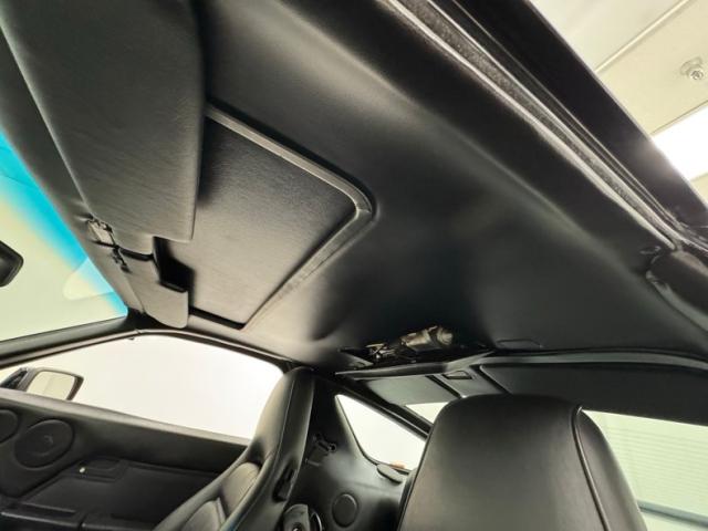 Solid black on the inside too where efficient door panels are neatly designed and clean. Then, the racy black leather bucket seats grab your attention with their sporty shape, deep pleats, and high head rests. Oh sure, there are suggestions of rear 2+2 seats, but reserved only for small children and your Trader Joe\'s reusable bags. That said, all four seats are in great condition. The classic H-style steering wheel leads to a simple instrument cluster with orange digital readouts in a spotless black plastic housing. The center stack is where you\'ll find the A/C panel and JVC AM/FM/CD with AUX and USB. Even the shifter is in nice shape with just the slightest patina on its T-shaped handle. Tight black carpet floods the floor and foot wells, and the rear cargo area and the headliner is in nice condition showing a loose motor cover door at the time of our photo session.