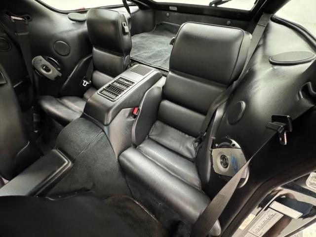 No trim on here to break up the Black coverage and only the light lenses deflect from the monochromatic profile that adorns this uniquely shaped Porsche. The rear wing, side mirrors, chin spoiler, body molding, window trim, all black. Beginning in \'87, the exterior was made more aerodynamically with flush and elongated tail lights while retaining the bug eye headlights that point to the sky until deployed. The 16-inch factory wheels wear the engraved Porsche crest in the center caps and here suffer from a bit of staining not seen at distance. A pair of rubberized bumper guards flank the license plate and a single exhaust tip exits on the left rear, at the base of the iconic bubble shaped rear and sloping hatch. A scuff on the front bumper corner and some detachment of the chin spoiler joins earlier mentioned imperfections on this otherwise very straight and clean example.
