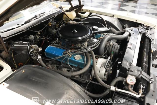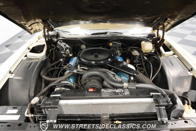 Pop the massive hood, and you\'ll find the powerhouse of this land yacht - a 500 cubic inch (8.2-liter) V8 engine. This enormous power plant pairs with a 3-speed automatic transmission, delivering smooth acceleration. The front-wheel-drive layout, a Cadillac innovation, provides unique handling characteristics. Power steering with Hydro Boost and power disc brakes on all four corners ensure confident control of this 5,000-pound luxury cruiser. A newer aluminum radiator keeps things cool, while the dual exhaust system, ending in a single outlet, provides a subtle rumble befitting a car of this caliber.