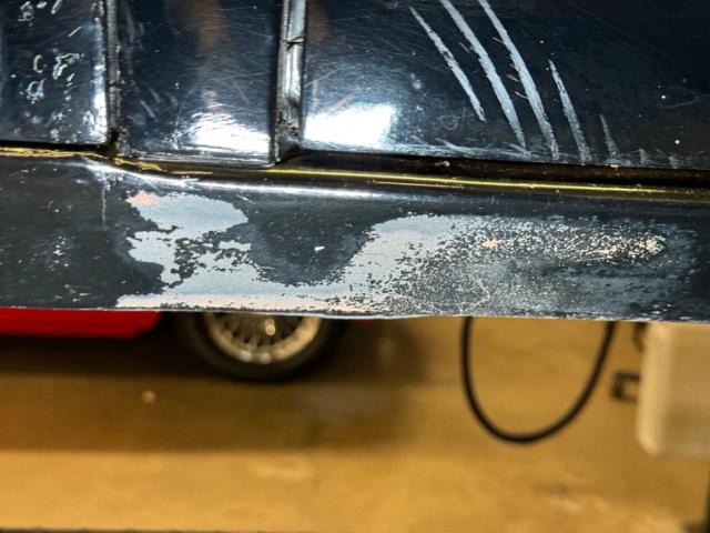 Patina hints at what\'s underneath with surface rust, more advanced in some areas is found throughout. The oil pan is dry, but the transmission has visible fluid including near the tail shaft, and the rear differential also has wetness including on and around the pinion gear. Caked on grease exists on steering and wheel components while more invasive rust can be seen on the inner rocker panels and floor pan. A single exhaust travels down the right side of the bottom, meets a stock style muffler, then exits out the back under the rear bumper. Independent suspension with coil springs are up front while leaf springs are in the back.