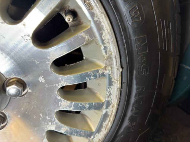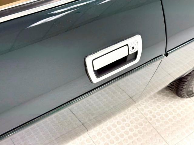 A swing of the doors reveals Barley colored leather on the door panels. There is a veneer strip near the upper sill of each door, yes real wood, looks great and the driver\'s door shows some wear. Other areas of the dash that have veneer are intact and nicely preserved and mix well with the light leather. The front bucket seats are in nice shape in Barleyleather with tan around the edges and around the insert up to the headrest. The driver\'s seat shows wear with cracks and fading of the leather, while the rear 2+2 seats could use a good detail but are intact. A black leather wrapped steering wheel shows minimal wear and leads to a woodgrain backed gauge assemblage with black faced easy to read dials. Burlwood also dominated the dash and center console where an onboard computer presides over an AM/FM/Cassette radio. This waterfalls onto the center console where a wood handled shifter is perfectly positioned for the relaxed arm perched on the armrest. There\'s some cracking in the laminate and the switch panel is loose, just below the shifter. Plush tan carpet blankets the floor and is in good condition.