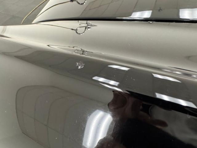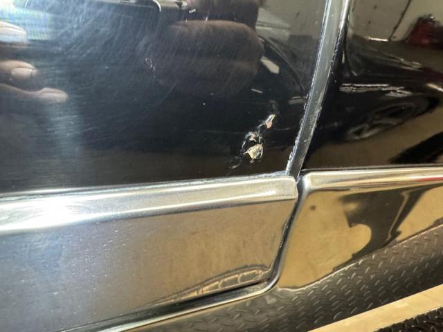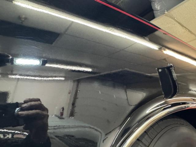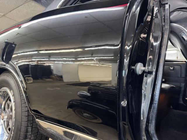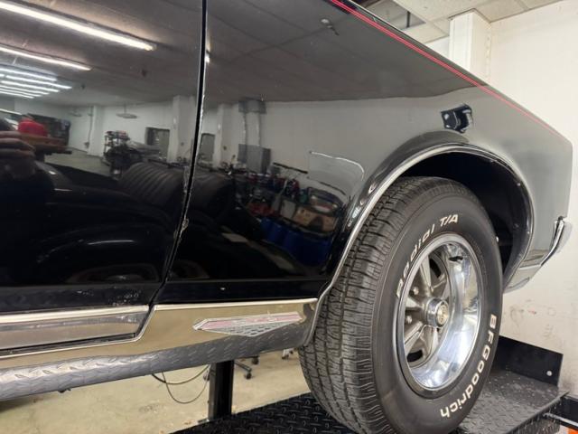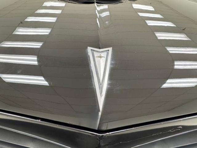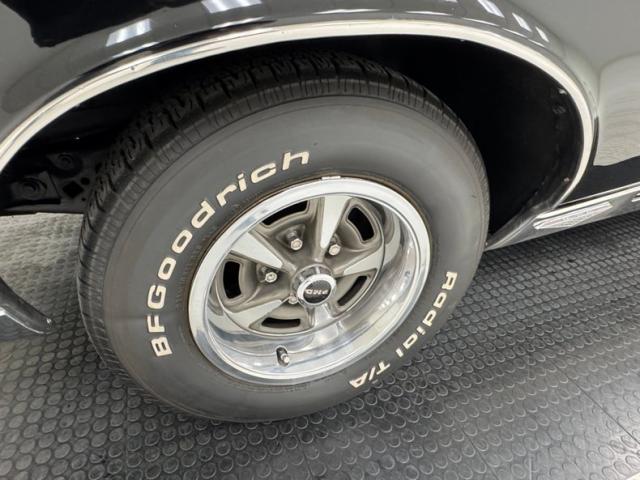 Our car was born with Palmetto Green paint, but now benefits from the two stage coverage of Starlite Black and it is mean and classy all at the same time. The vertical headlights flank a grille that works its way to a point in the center, in line with a scoop that shares the hood with the tachometer. Chrome bumpers are complemented by the headlight bezels and other metalwork on the car is in great condition and a red pinstripe spices things up a bit. Meanwhile, 15-inch Pontiac Rally II wheels carry 235/70R15 tires. Four section tail lights are new for 1967, an amazing cosmetic feature and look great enveloped in black and our black vinyl top is also in very nice condition. Imperfections include a touched up chip, some less than perfect filler, a couple of blisters low on a door, a chip at the panel gap ahead of the door and some touch up on the door edge, scuffs and cracking filler above the rocker panel, and minor inclusions on the topside of a fender.
