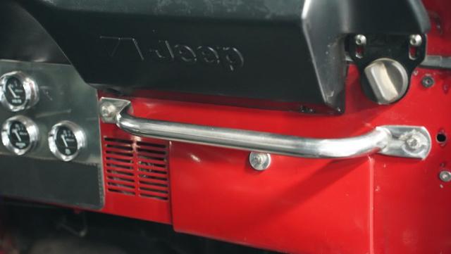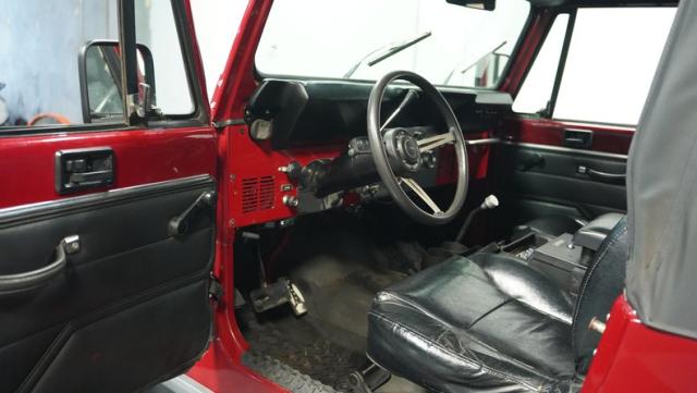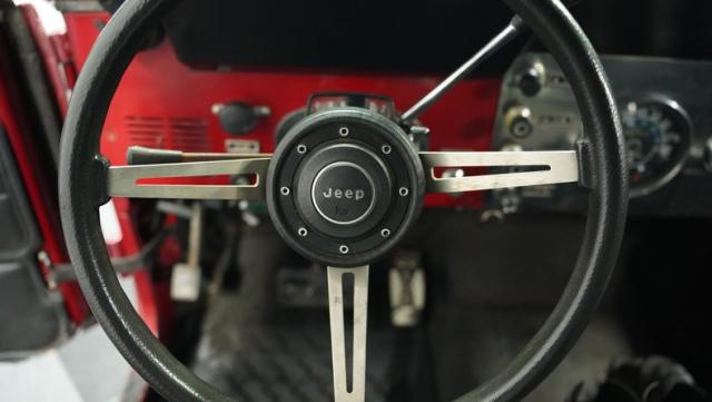 Powering this CJ7 is a potent 304 CI V8 engine, a rare and desirable option for these models. It\'s paired with a 3-speed automatic transmission, offering a blend of muscle and convenience. The engine bay reveals a recently updated Holley carburetor with an electric choke, enhancing performance and cold-start reliability. The fuel system shows signs of recent maintenance with new fuel lines and filter. Cooling duties are handled by the factory system, while the stock ignition, intake, and exhaust manifolds remain in place. This powertrain combination delivers ample torque for crawling over obstacles or cruising down the highway.