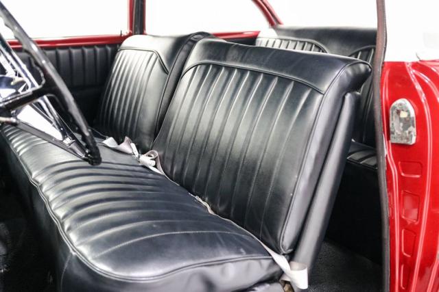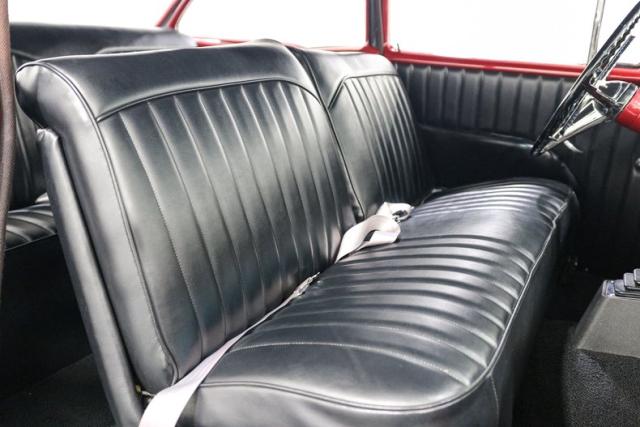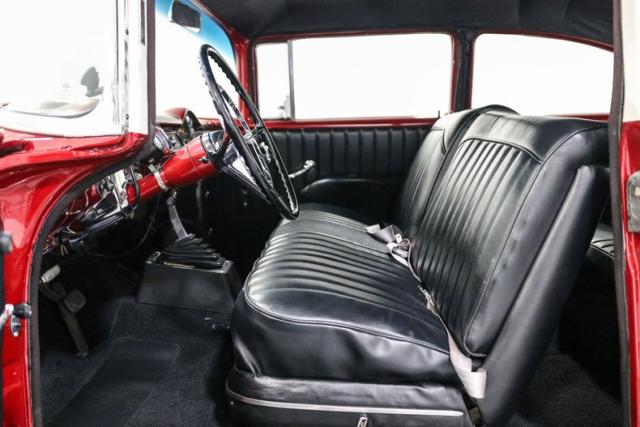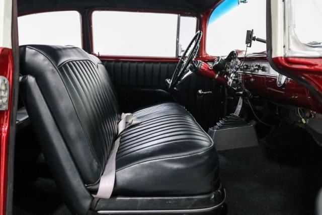 Inside, a custom black vinyl bench interior keeps things simple and period-correct with just enough attitude. Even the aftermarket radio is tucked away in the glovebox to preserve the clean dash. This is the kind of Bel Air that respects its roots while embracing smart upgrades, a car that feels just as right cruising Main Street as it does stretching its legs on the open road.