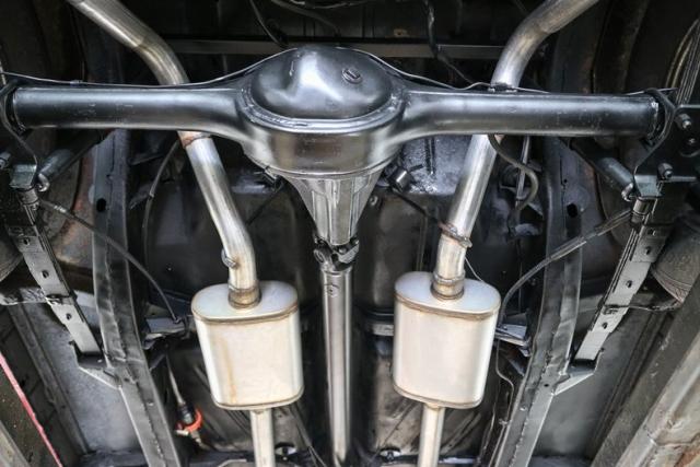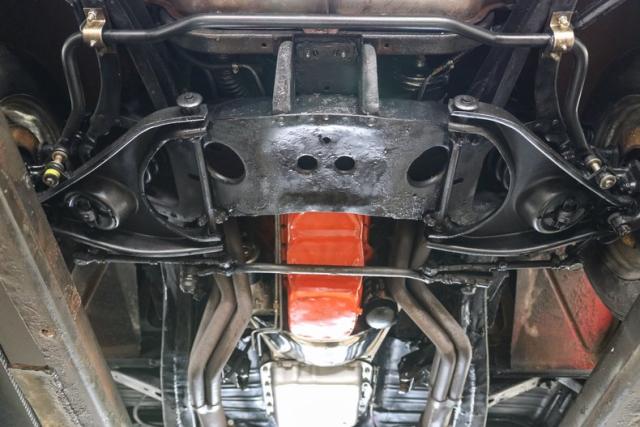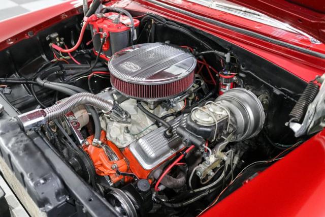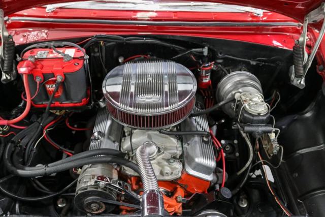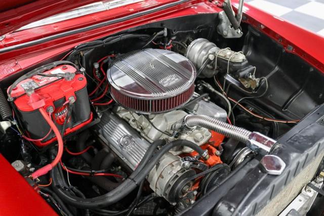 Under the hood sits a tried-and-true 350ci V8 built for real driving, not just parking lot posing. It breathes through double hump heads, an Edelbrock intake, and a Holley Sniper EFI setup that delivers modern throttle response with classic muscle feel. Long tube headers let it exhale with authority, while finned aluminum valve covers and air cleaner add the right amount of old-school flash.