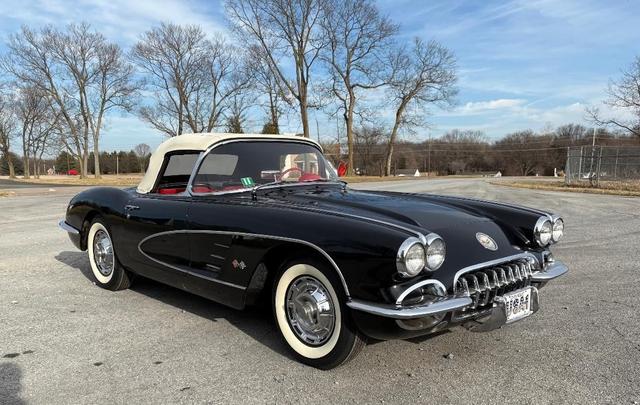 1959 Chevrolet Corvette Roadster with the complete original drivetrain to include 283 cu in V8 engine with 4 BBL carb, and dual exhaust. Has the 3 speed manual transmission and the factory push button radio along with the correct ignition shielding on the engine. This vehicle was purchased new at Rosenthal Chevrolet in Arlington, Virginia off the showroom floor. in 1959. The car still carries the original paint, along with much of the original interior and complete drivetrain. Braking system was just gone through along with a complete tune up. I Purchased this car myself from the original owner in 1972 and have kept it stored for the past 54 years. The original Bill of Sale from Rosenthal Chevrolet is included.