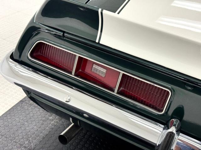 We were hard pressed to find any flaws on the two stage Fathom Green paint that covers this car. Painted white stripes travel from the nose and over the cowl hood, broken by the roof, then reemerging on the trunk lid and over the spoiler. The chrome bumpers as well as the door handles, window trim, and side mirror are in fantastic condition while additional metal trim includes the rain gutters, clean and clear, wheel opening trim that shows no dings, and the rocker panel trim, also nice. 1969 saw the introduction of the quarter panel decorative vents and they stand out against the dark green paint on newer quarter panels while 15-inch Chevrolet Rally wheels continue the consistently good metal on the car and the original twin tailpipes are icing on the cake.
