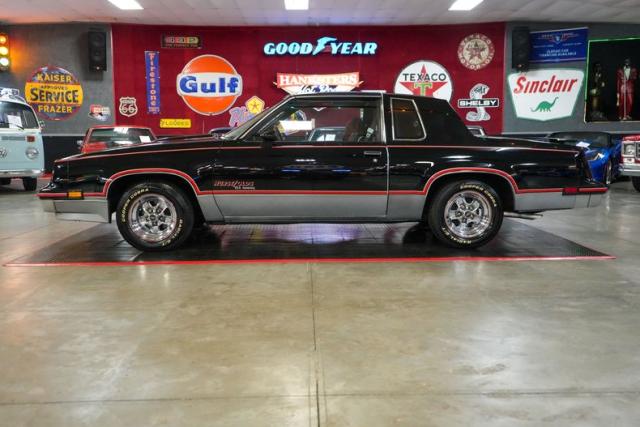 This 1983 Oldsmobile Hurst/Olds 15th Anniversary Edition celebrates a legendary muscle car legacy with style and performance. Powered by a 307ci Oldsmobile small block V8 and backed by a 200-4R 4-speed automatic transmission, it features a GM 10-bolt POSI rear end with 3.25 gears. This limited-edition model boasts T-tops, air conditioning, power steering, and power brakes with front discs. The red cloth interior complements the iconic black and silver two-tone exterior. Rolling on 15\" chrome Super Stock wheels and Cooper Cobra Radial G/T tires, this Hurst/Olds is a true 80s classic with muscle car pedigree and road-ready confidence. THIS VEHICLE QUALIFIES FOR FREE SHIPPING AND A WARRANTY!!