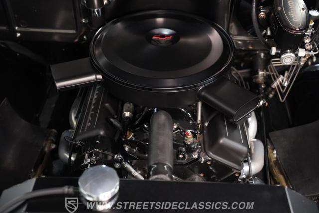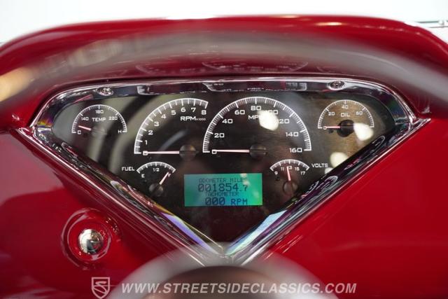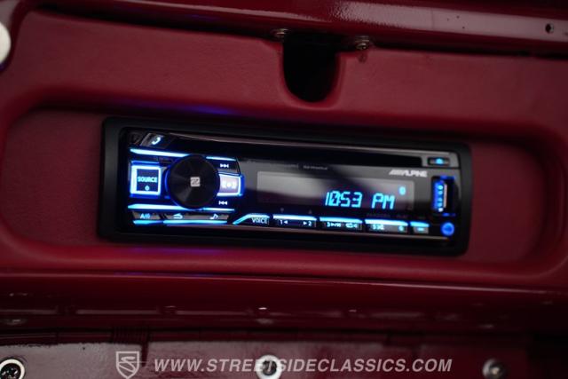 Step inside and you are greeted by a custom interior that blends classic style with modern comfort. The bench seat and door panels are wrapped in striking red leather, perfectly complemented by a painted-to-match dash and Dakota Digital gauges. Power windows and integrated cupholders add convenience, while a tilt column and hidden radio in the glovebox ensure that every detail feels both luxurious and thoughtfully designed. This cabin is truly a standout, ready for both show and cruise nights.