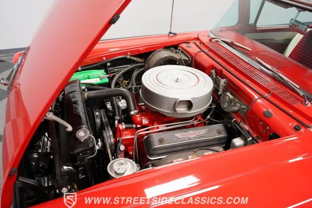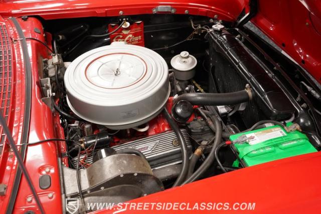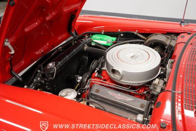 Under the forward-opening hood is an optional 312 cubic inch Thunderbird Special 4-barrel V8 engine dressed up with factory-finned aluminum Thunderbird logo valve covers. The engine is paired with a 3-speed manual transmission with overdrive. The correctly detailed engine bay also features optional windshield washers, power steering, and power brakes.