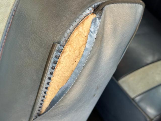 Varying shades of blue vinyl cover the door panels and both are in need of restoration. The split bench seat is patterned tri-colored vinyl and is torn badly on the driver\'s side with smaller tears on the passenger side. If you need inspiration to redo them, simply look at the back bench which is in very good condition and wears the Pontiac arrowhead on each side. Blue and clear plastic are mere remnants of their cool design on the steering wheel which will need to be replaced or completely rebuilt. It shares a narrow column with a shifter that is rod shaped and minimalistic while the dash is also a simple compilation of gauges, buttons, and an AM/FM/Cassette radio. The metal backed dash moving right is finned over a blue metal glove box and lower panel with spots of rust near the hardware. Blue loop carpet covers the floor and does not look bad while the headliner and visors will need complete restoration. The trunk is in driver condition with an old period mat and a spare tire.