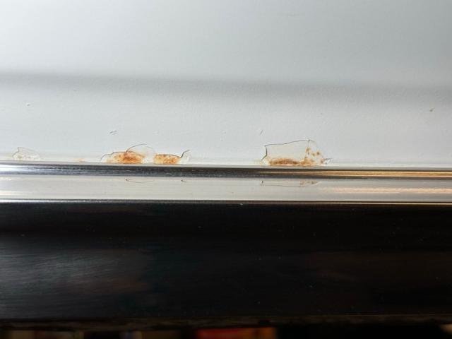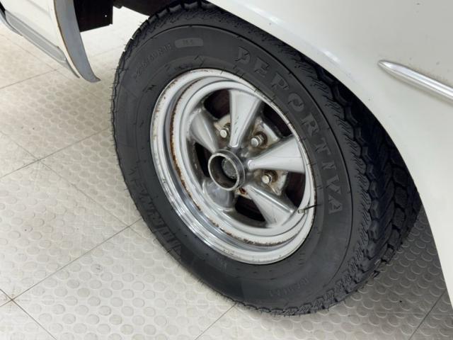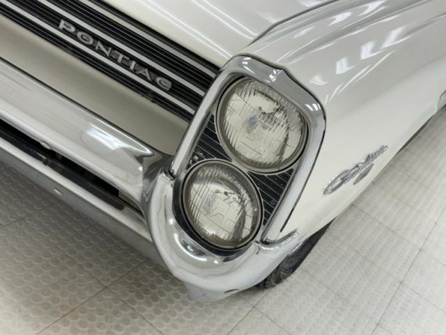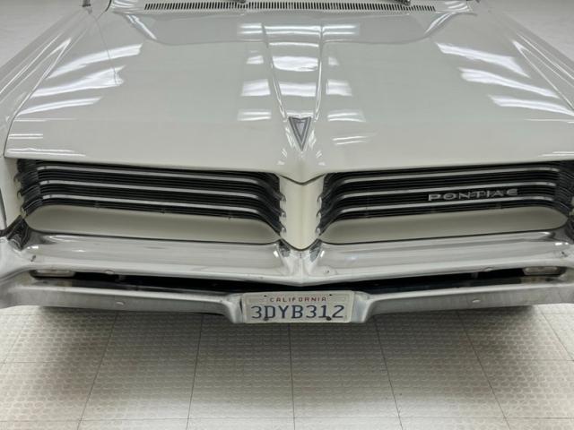 Our car is in Cameo White which covers the car end to end and on the hardtop which is delineated with interesting C-pillar trim that almost gives it the look of an accessory hardtop, but it\'s fully attached. The Pontiac nose is lined with the grille strakes that curve from extended headlights to the center, all underlined by a chrome bumper sculpted to the lower light of the horizontal pair. Equal proportions of the hood, cabin, and rear create a handsome profile connected by a dead straight shoulder line and right angles forming perfectly vertical fascias front and rear. Decent chrome covers the rear bumper which is shaped to accept the big vertical taillights and the square tail is intersected by a Pontiac branded band of trim. Rectangle exhaust tips keep the squarish theme, and the rear window and C-pillars narrow within the shoulder line where wide flat berms are a fitting place to rest your non-steering arm. 14-inch Cragar mag wheels are on the car and looking a bit tired, but they are wearing 235/60R14 tires with a late 2023 date code. Imperfections include rust and repairs on the door and near the rocker and on the sill as well as some bubbling in other areas.